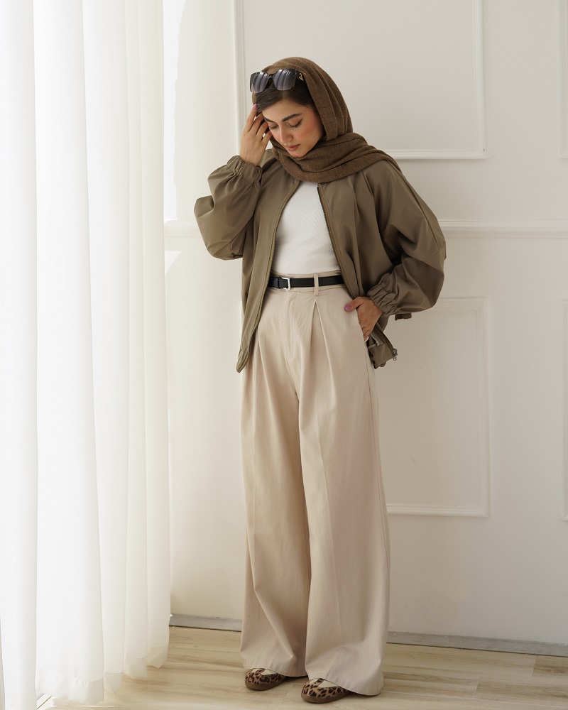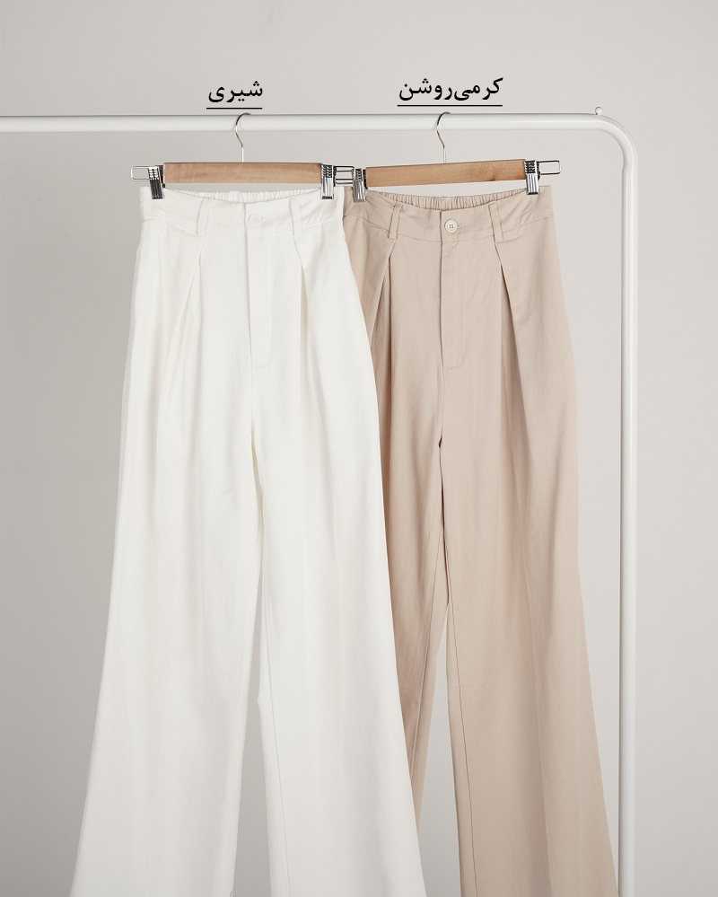 - توضیحات محصول: جنس شلوار، کجراه است. کمر شلوار پشت کشی می باشد. جلوی شلوار، دکمه و زیپ برای شهولت در پرو کارشده است. شلوار دارای دو جیب کاربردی و بندینک (جای کمربند) می باشد.
