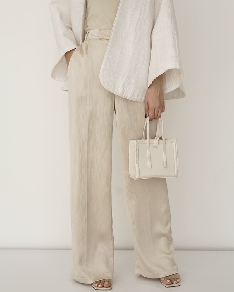 - توضیحات محصول: جنس شلوار ساتن پلیسه می باشد. کمر شلوار پشت کشی بوده و تنخور شلوار بگ می باشد. شلوار دارای دو جیب کاربردی و دارای بندینک (جای) کمربند می باشد.
