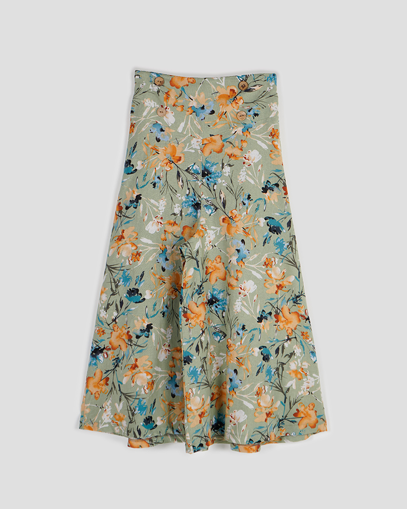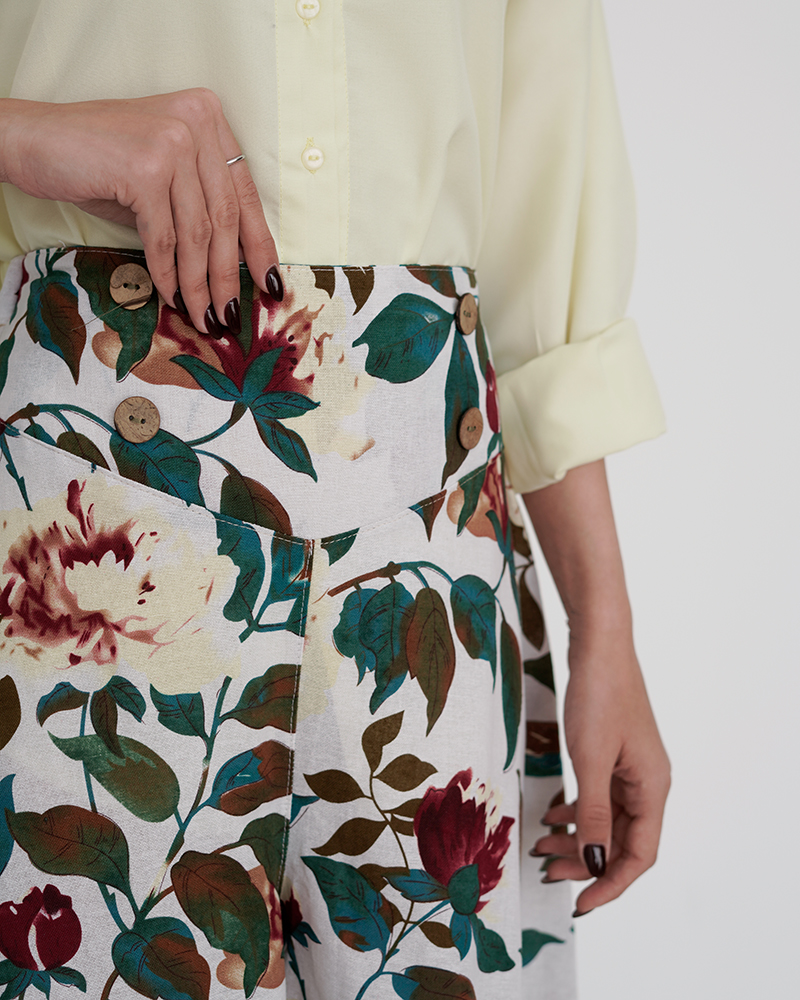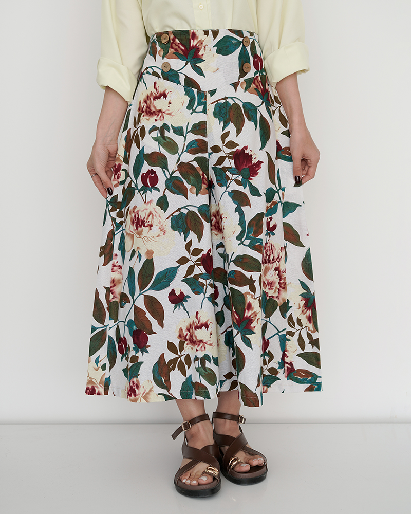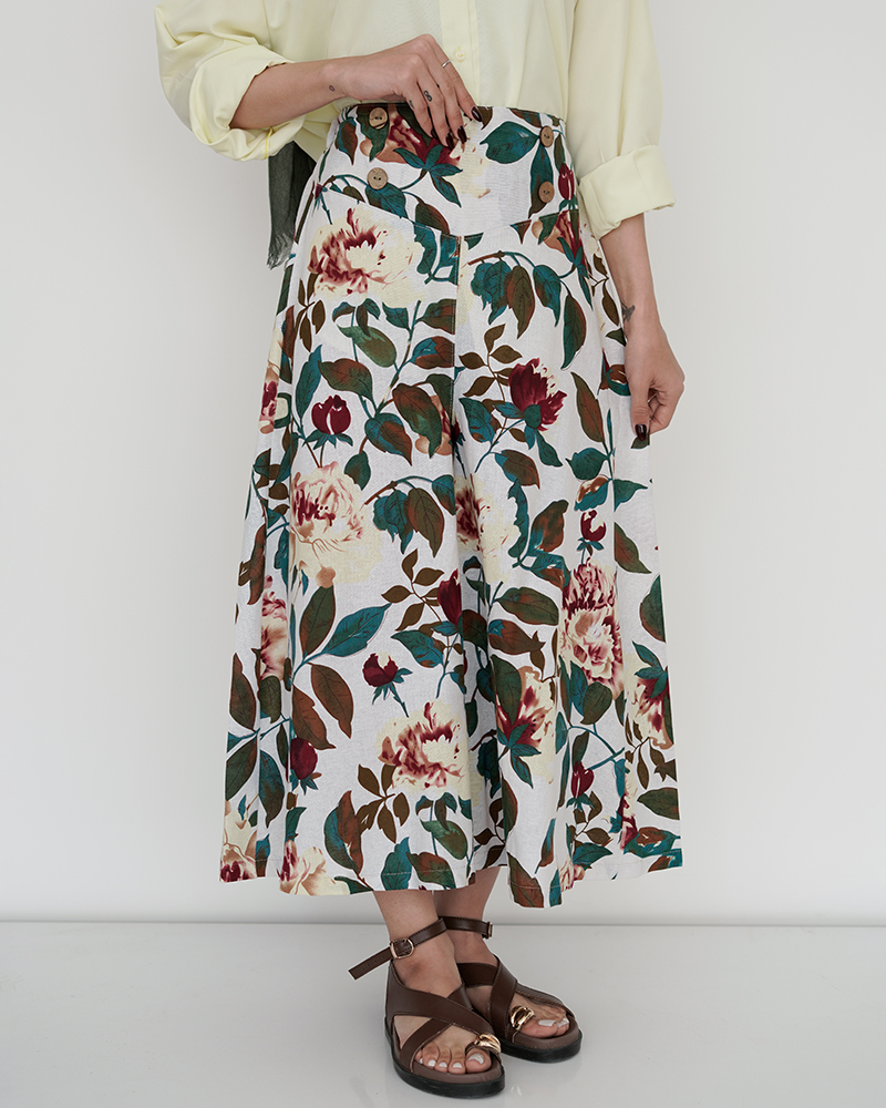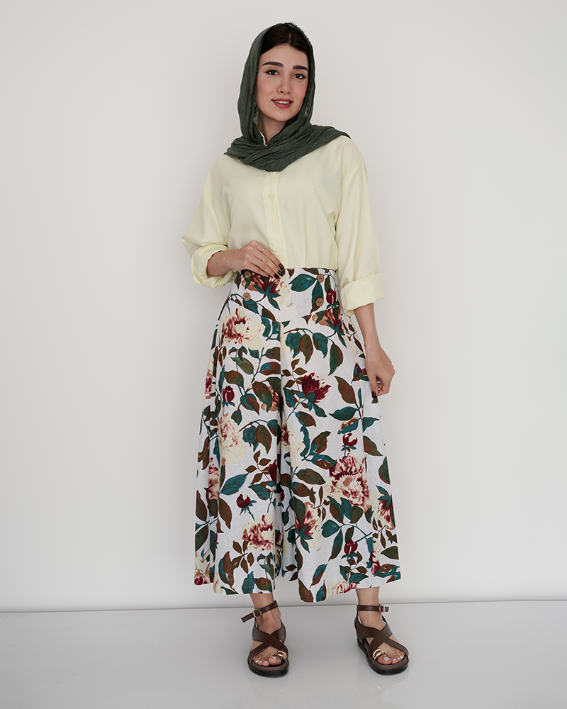 - توضیحات محصول: جنس شلوار دامنی لینن چاپی می باشد. کمر این شلوار پشت کشی بوده و دکمه های قسمت کمر نما می باشد. این محصول بسیار خنک و سبک و راحت مناسب استفاده روزمره است. میزان آبرفت از طریق جدول راهنمای سایز قابل مشاهده است.