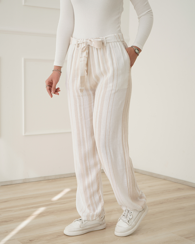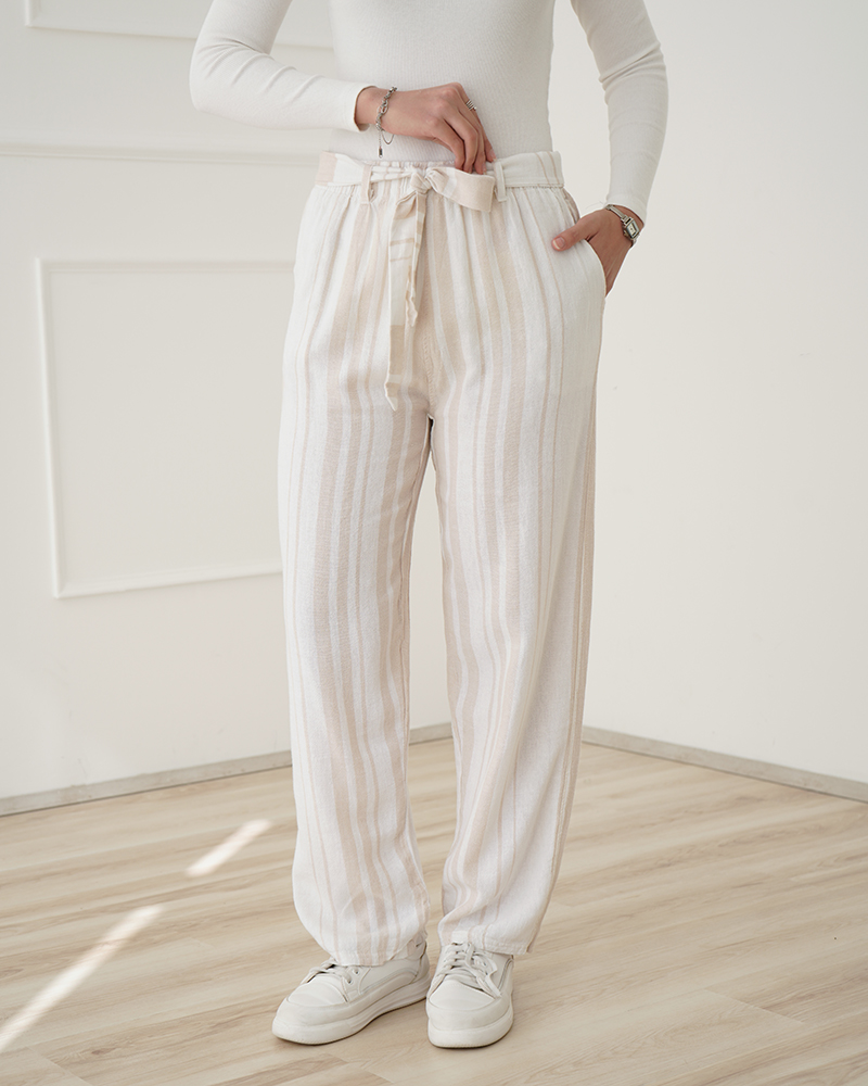 - توضیحات محصول: جنس شلوار لینن می باشد. کمر شلوار کشی بوده و دارای بند قابل تنظیم می باشد. میزان آبرفت از طریق جدول راهنمای سایز قابل مشاهده است.