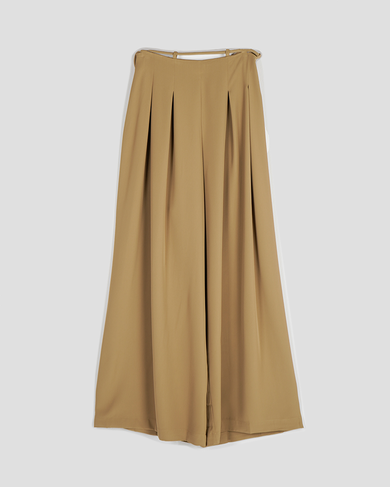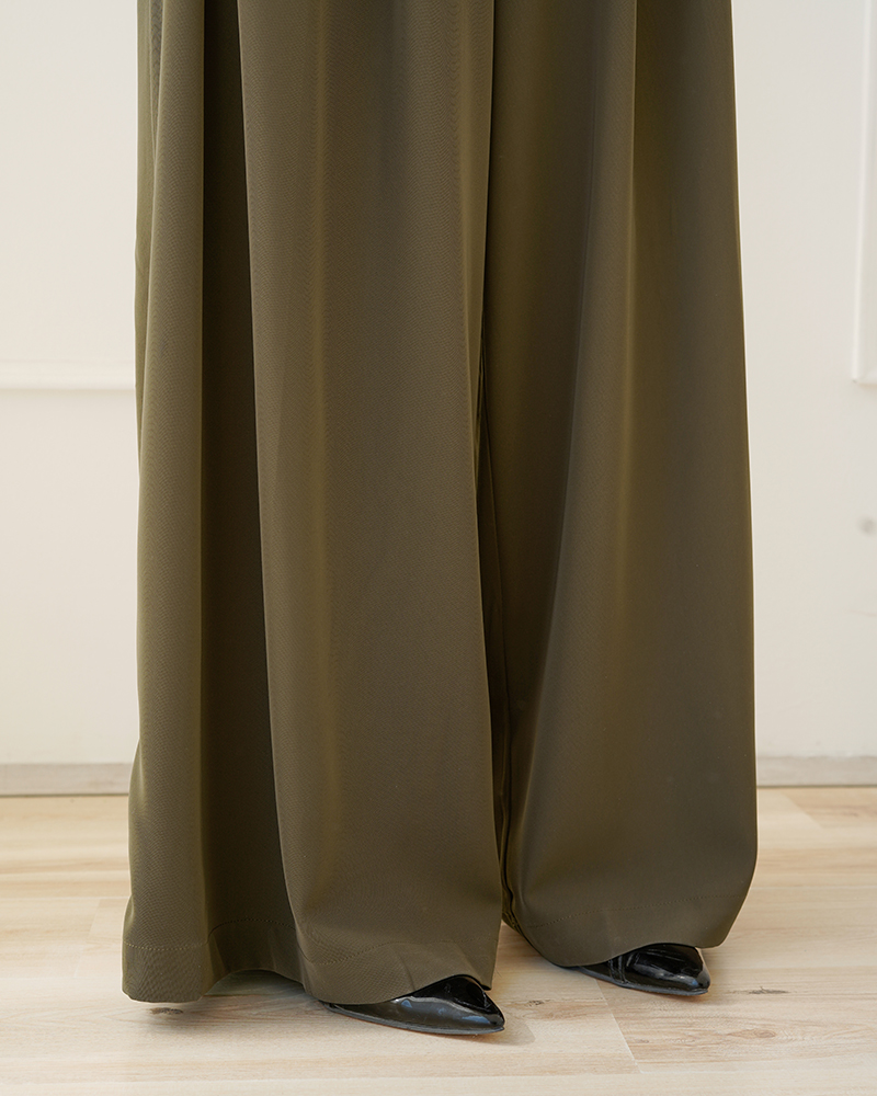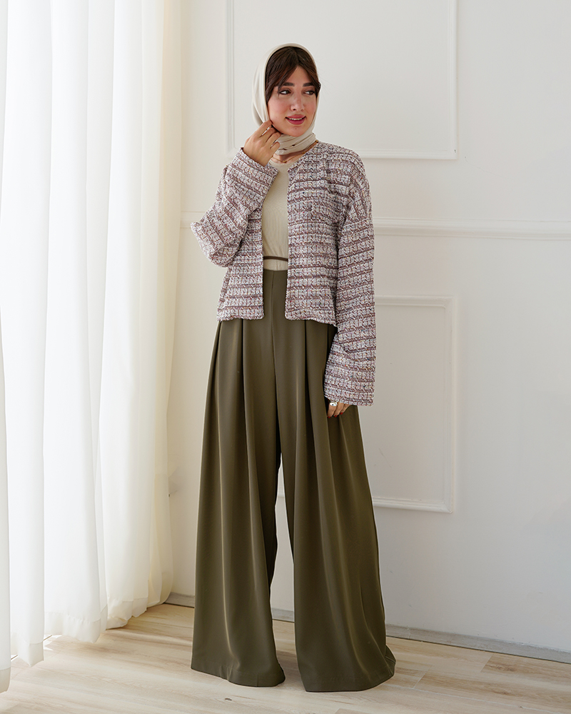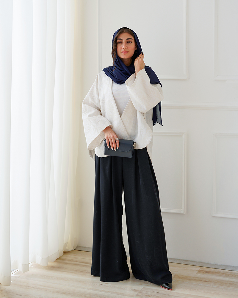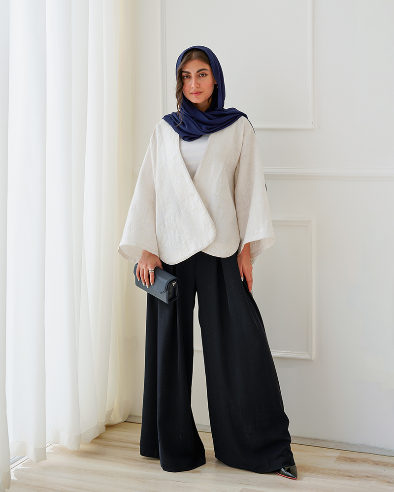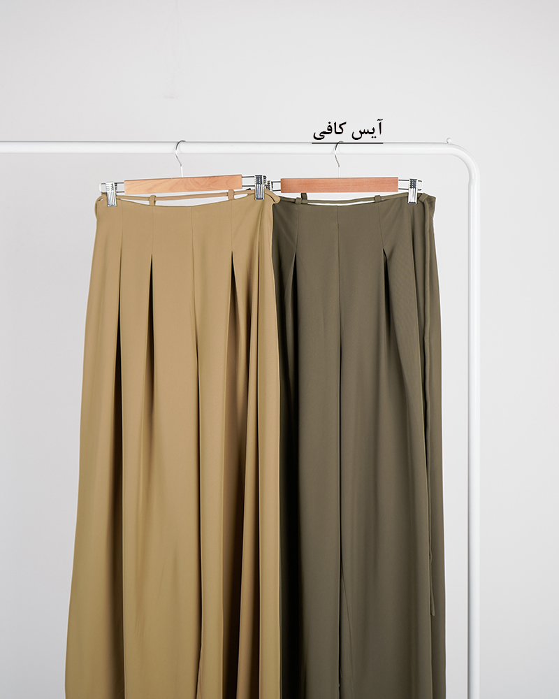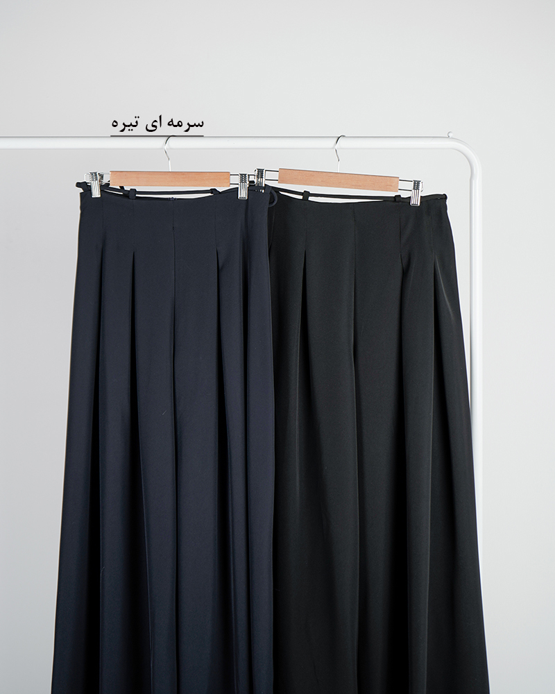 - توضیحات محصول: جنس شلوار، کرپ است. کمر شلوار دارای بند و زیپ مخفی برای سهولت در پرو می باشد. شلوار فول بگ و پیلی دار است.