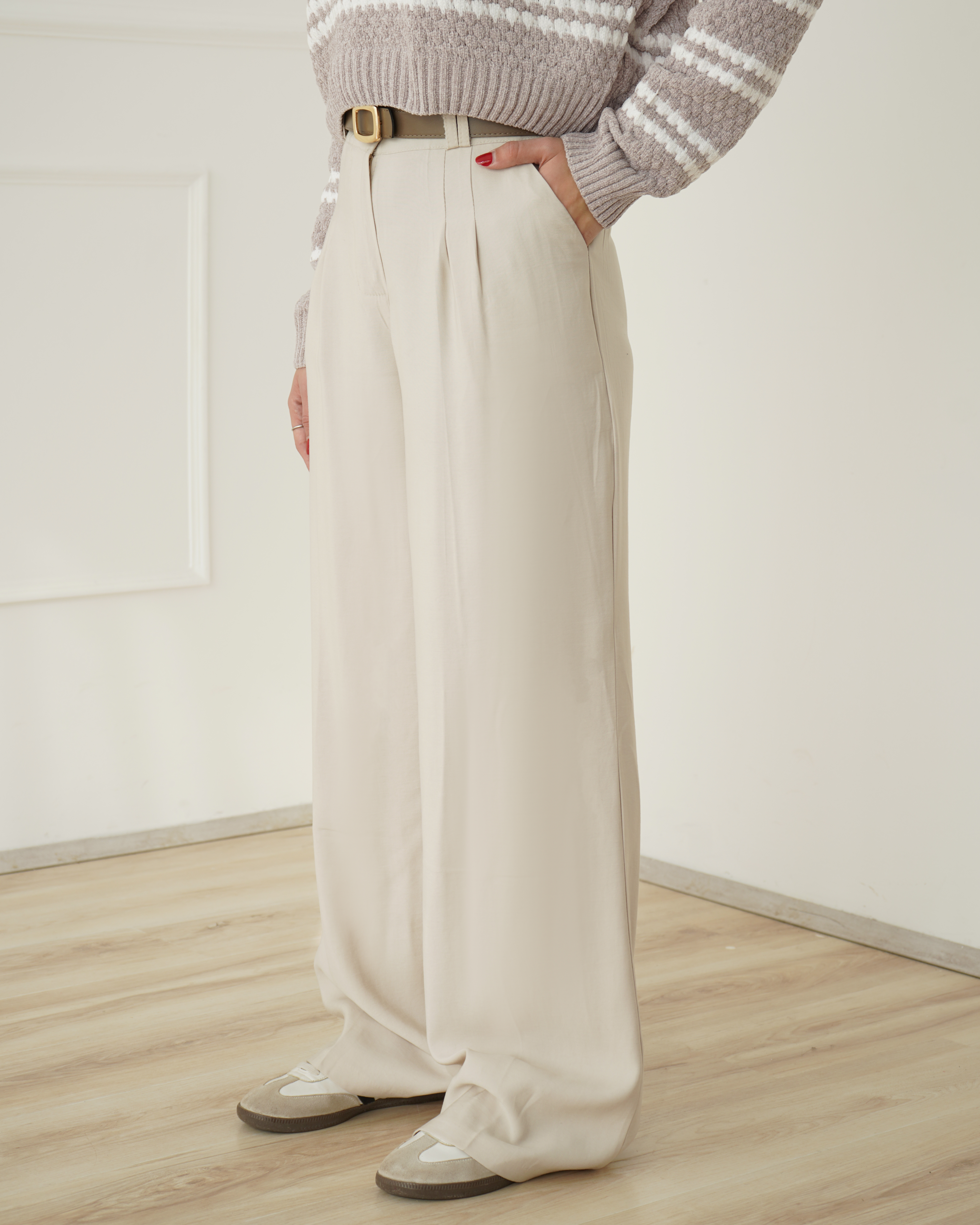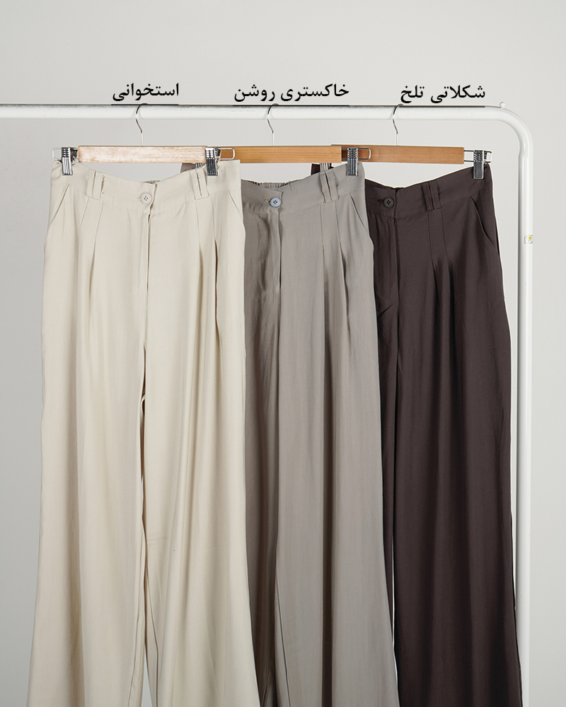 - توضیحات محصول: جنس شلوار، سیلک است. شلوار تنخور فول بگ دارد. دارای دو جیب کاربردی و بندینک (جای کمربند) می باشد.