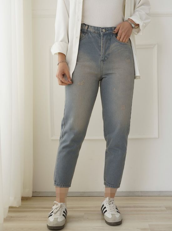 - توضیحات محصول: جنس شلوار جین می باشد. کمر شلوار دکمه ای و زیپی است. این محصول دارای تنخور مام می باشد.شلوار فاقد کشسانی می باشد.ممکن است نوع زاپ ها کمی متفاوت باشد.
