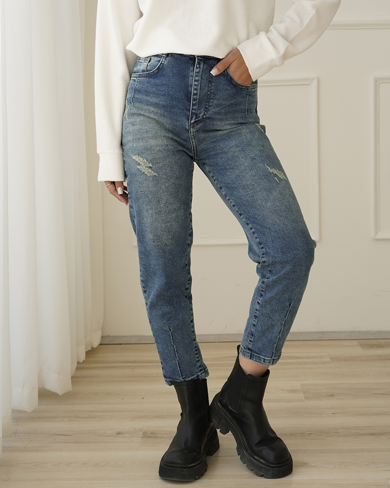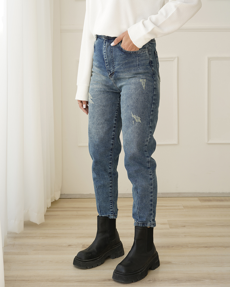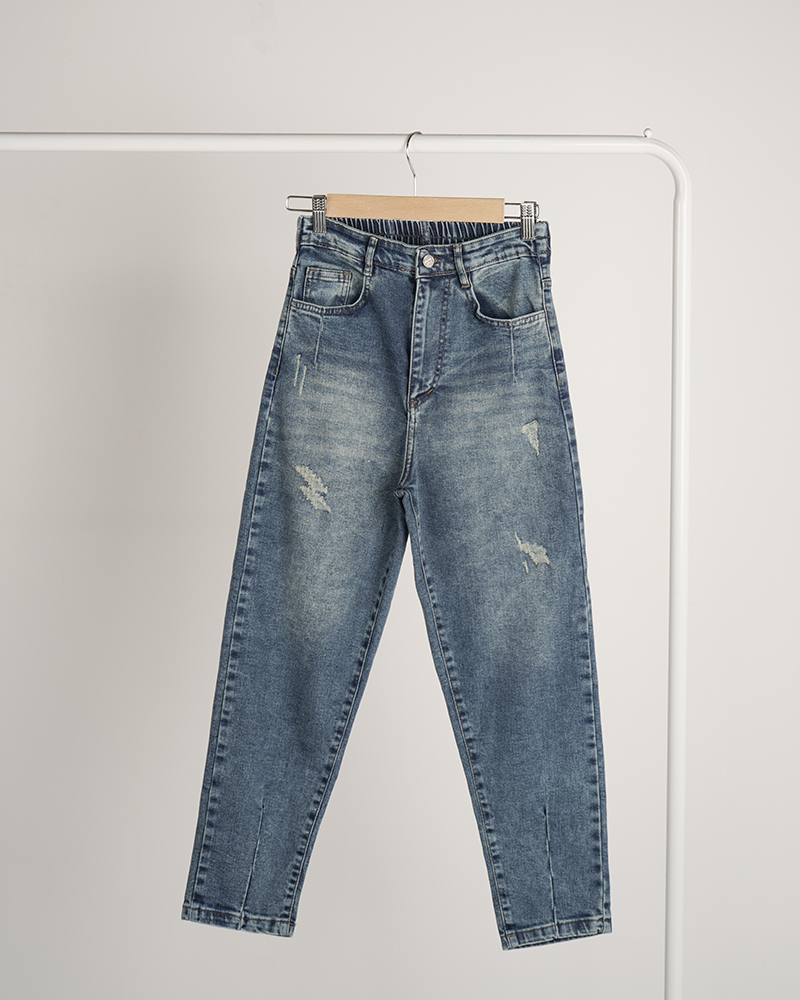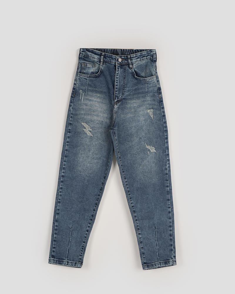 - توضیحات محصول: جنس شلوار جین می باشد. کمر شلوار پشت کشی و شلوار دارای کشسانی می باشد. تنخور شلوار مام فیت است.ممکن است نوع زاپ ها کمی متفاوت باشد.