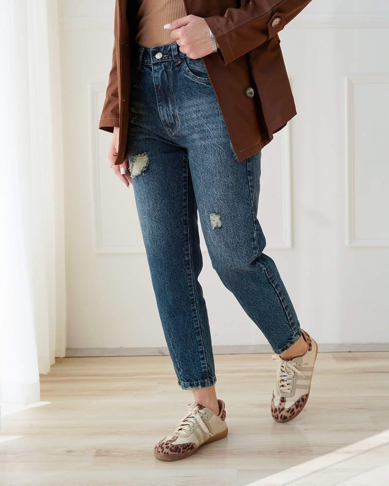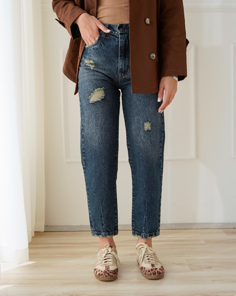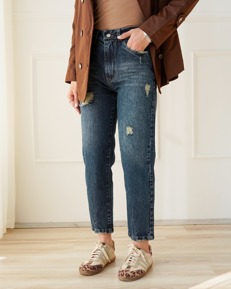 - توضیحات محصول: جنس شلوار جین می باشد. کمر شلوار دکمه ای است. این محصول دارای تنخور مام می باشد.ممکن است نوع زاپ ها کمی متفاوت باشد.