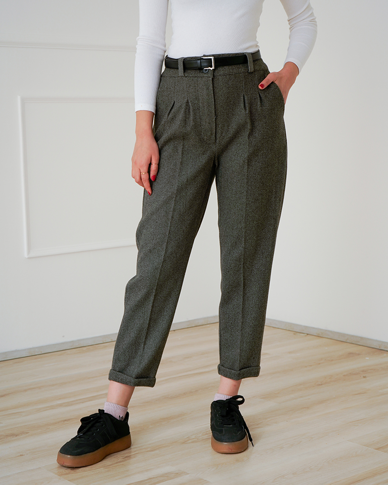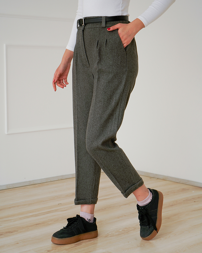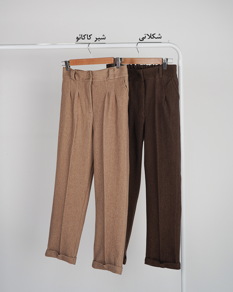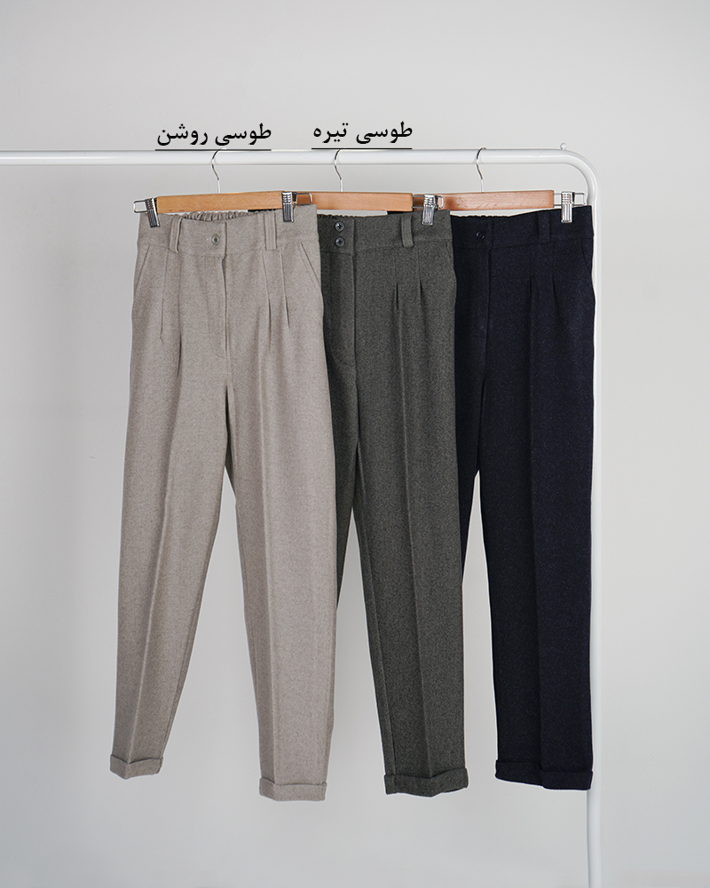 - توضیحات محصول: جنس شلوار، فوتر است. شلوار کمر پشت کشی می باشد. دارای دو جیب کاربردی و بندینک (جای کمربند) است.