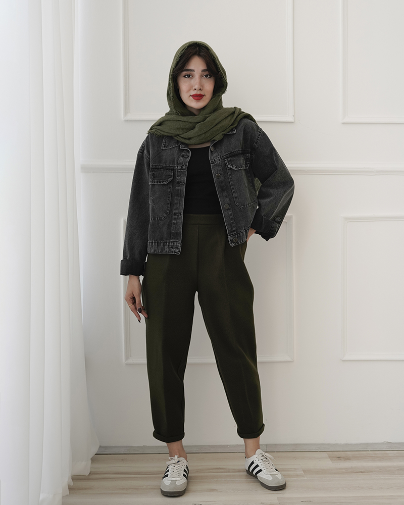 - توضیحات محصول: جنس شلوار، فوتر است. کمر شلوار، پشت کشی می باشد. شلوار، دارای دو جیب کاربردی است.