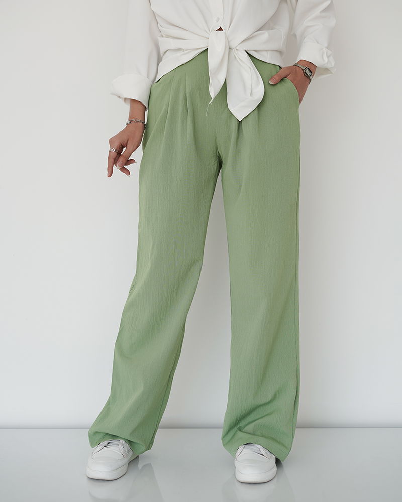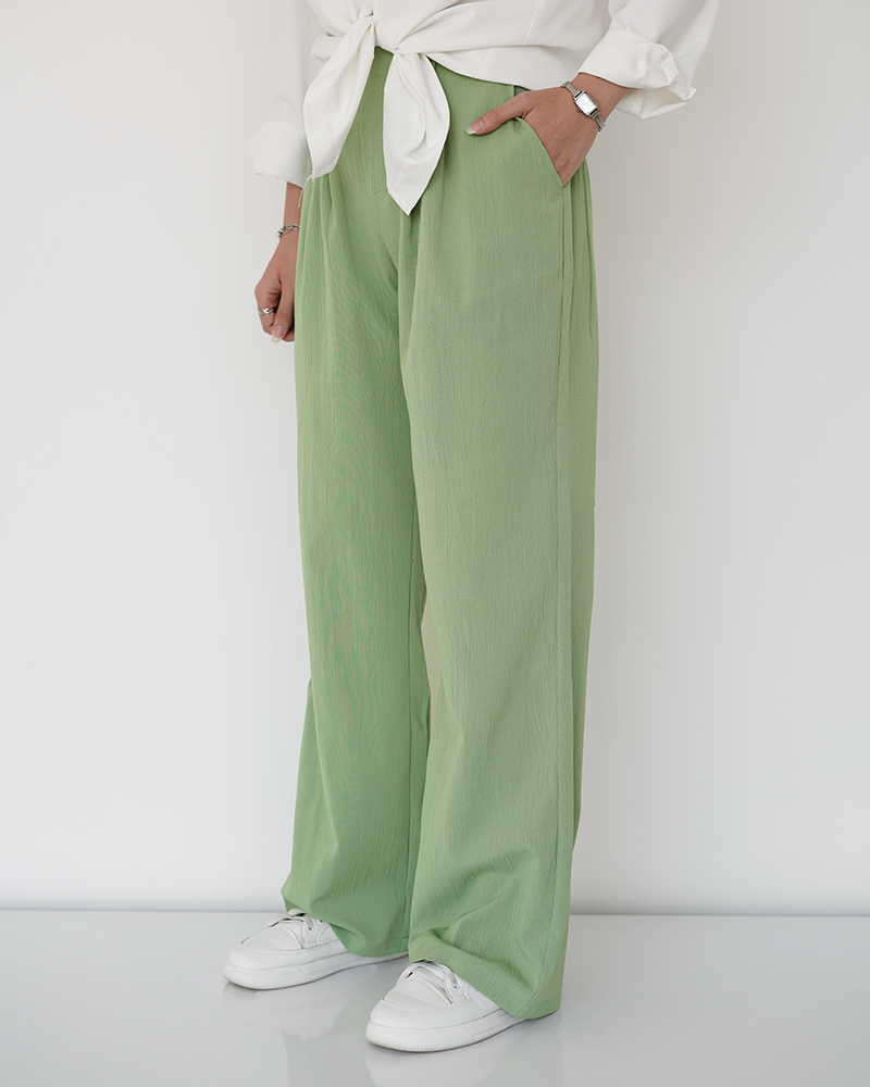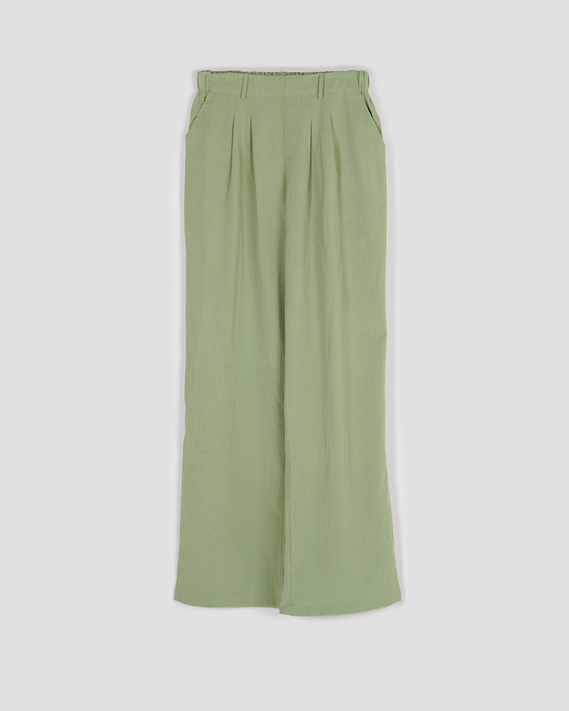 - توضیحات محصول: جنس شلوار، دبل کریشه است. کمرشلوار، پشت کشی می باشد. دارای دو جیب کاربردی و بندینک (جای کمربند) است.