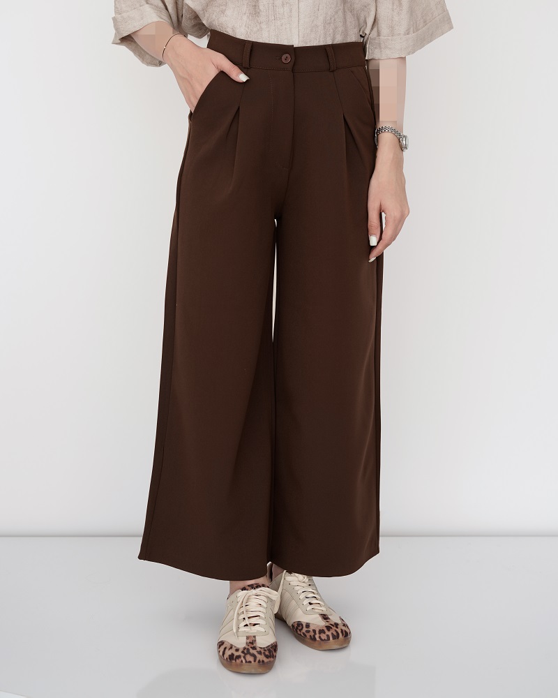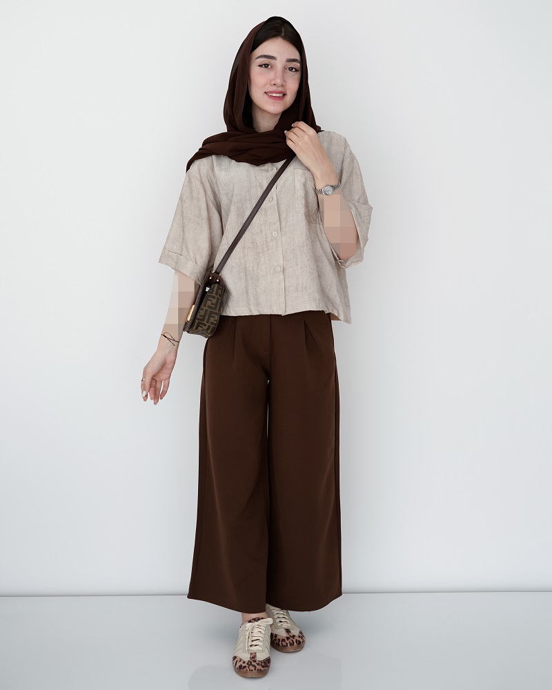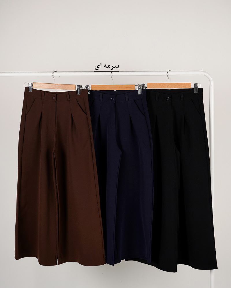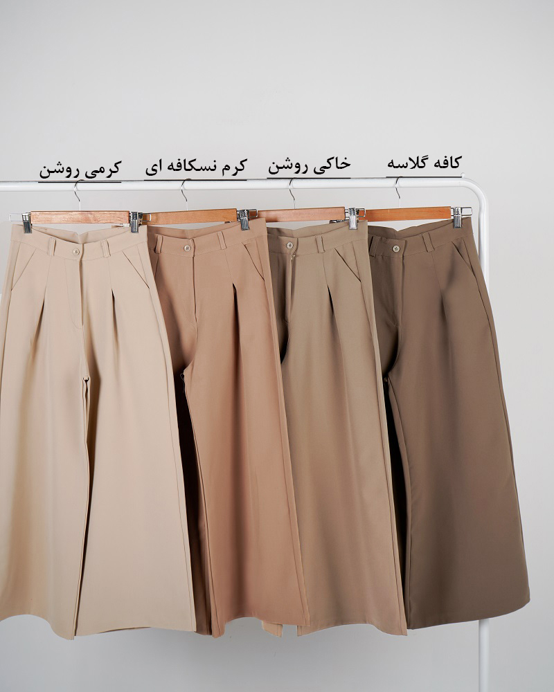 - توضیحات محصول: جنس شلوار کرپ می باشد. کمر این شلوار دکمه ای بوده و شلوار فاقد کشسانی است. تنخور شلوار واید می باشد.