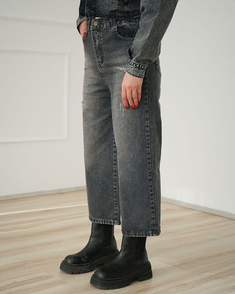 - توضیحات محصول: جنس شلوار جین می باشد. کمر پشت کشی و دکمه ای است. شلوار فاقد کشسانی می باشد. تنخور شلوار واید لگ است.