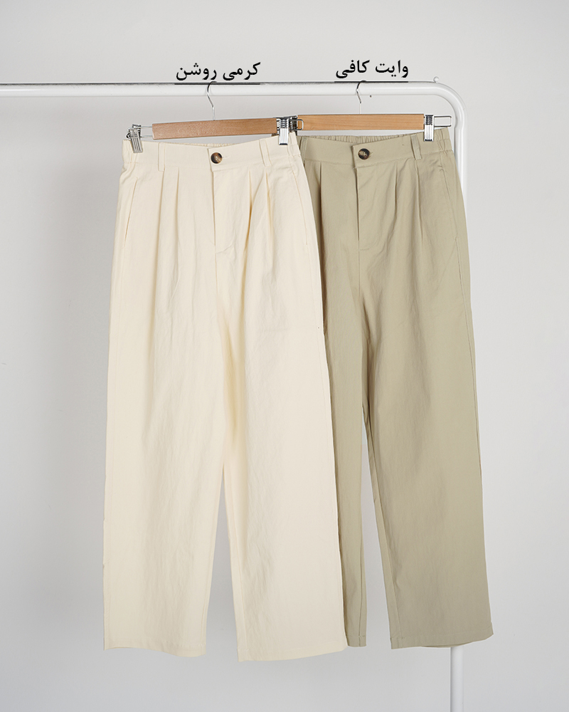 - توضیحات محصول: جنس شلوار کتان کش می باشد. کمر شلوار پشت کشی ،دکمه ای و دارای پل کمربند می باشد. این محصول جلو پیلی و دارای دو جیب کاربردی است. شلوار بسیار کاربردی و خوش دوخت همراه با کشسانی بالا مناسب استفاده روزمره است.