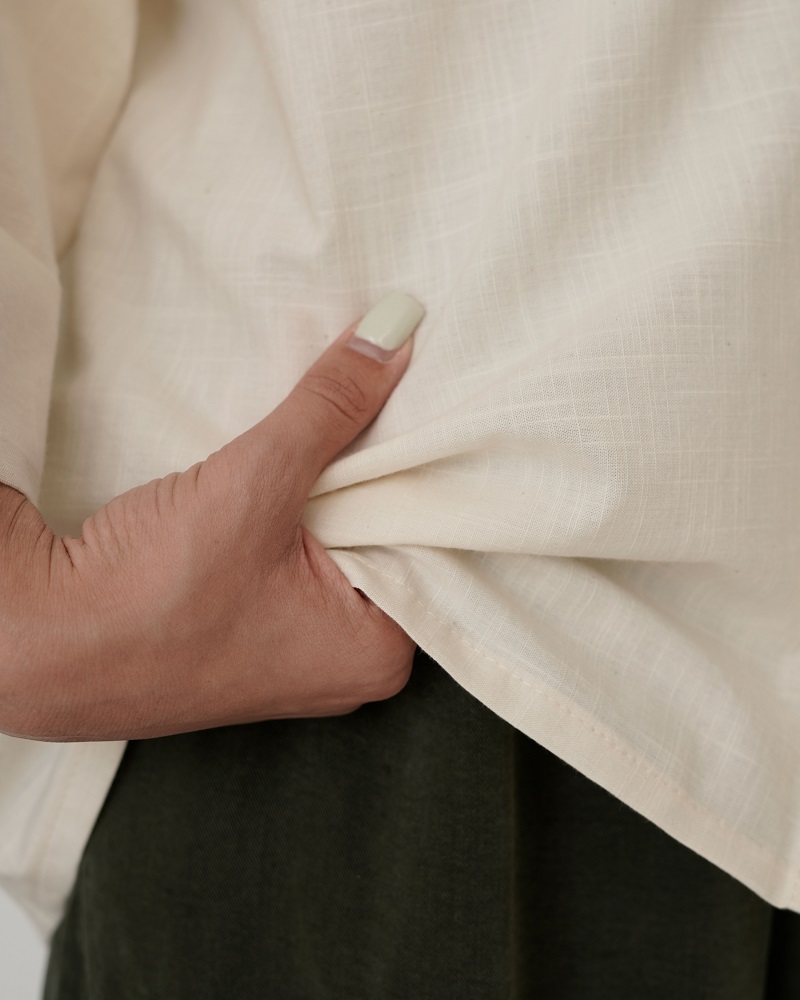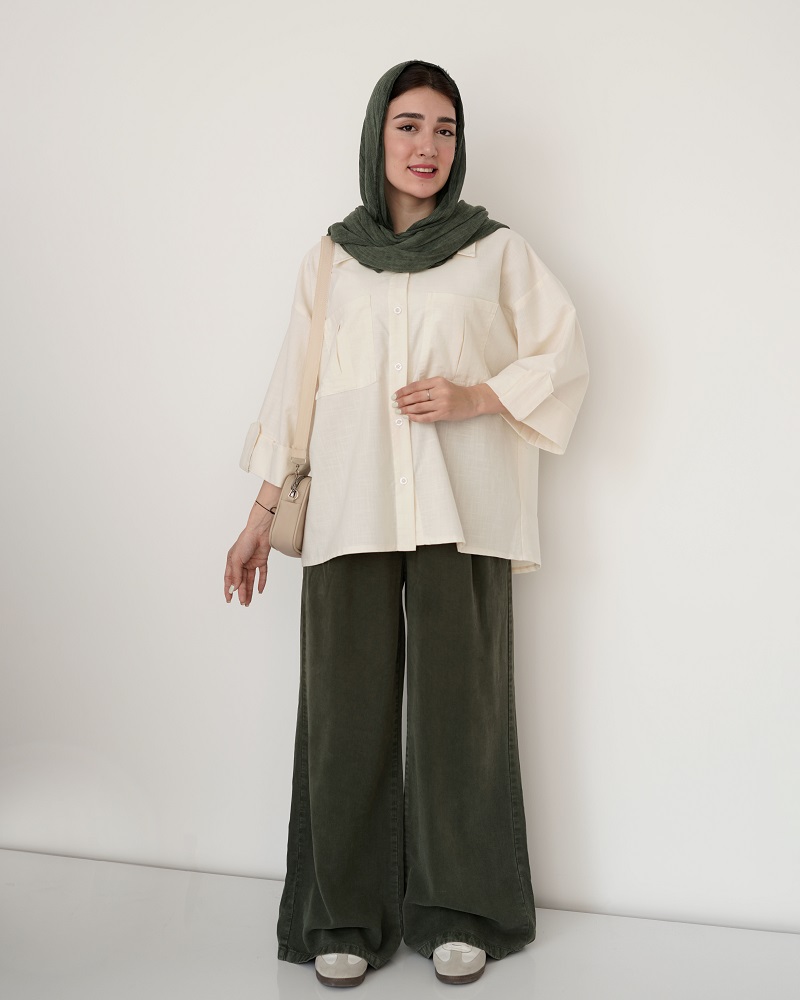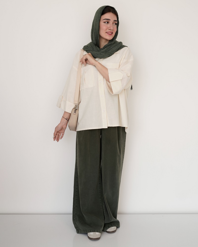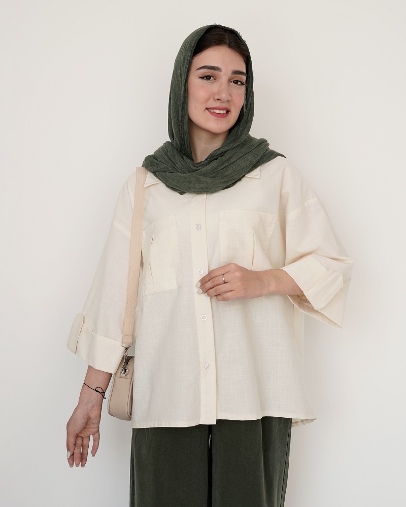 - توضیحات محصول: جنس شومیز، لینن نخ است. جیب ها و دکمه ها کاربردی می باشد. شومیز، یقه مردانه است. میزان آبرفت از طریق جدول راهنمای سایز قابل مشاهده است.