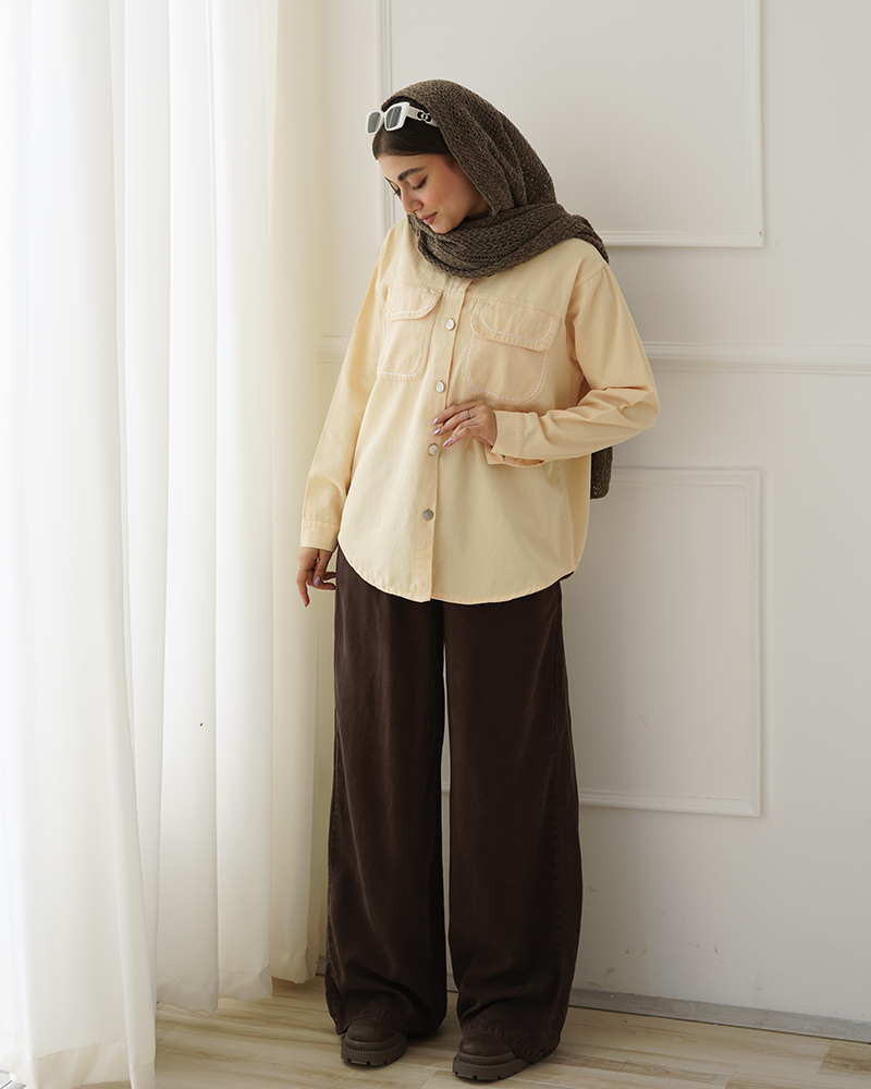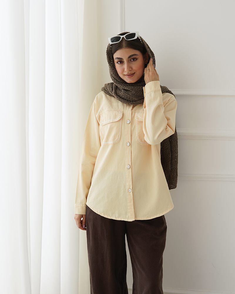 - توضیحات محصول: جنس شومیز کتان می باشد. شومیز یقه مردانه ،آستین بلند و دارای دو جیب کاربردی می باشد. دکمه های این محصول در قسمت سر آستین و جلو کاربردی می باشد. این محصول بسیار با کیفیت و راحت مناسب استفاده روزمره است.