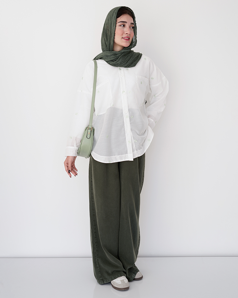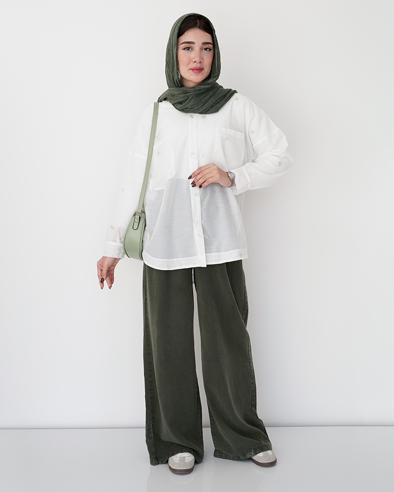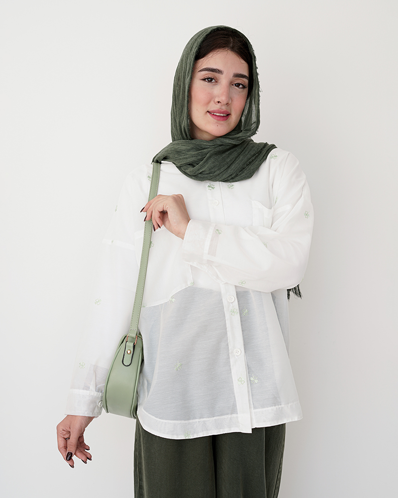 - توضیحات محصول: جنس شومیز حریر می باشد. شومیز یقه مردانه و آستین بلند بوده و طرح های روی شومیز گلدوزی شده می باشد. این محصول دارای دکمه های کاربردی در قسمت جلو و سر آستین می باشد. شومیز بسیار شیک و خوش دوخت مناسب استفاده روزمره است. این محصول بدن نما می باشد. میزان آبرفت از طریق جدول راهنمای سایز قابل مشاهده است.
