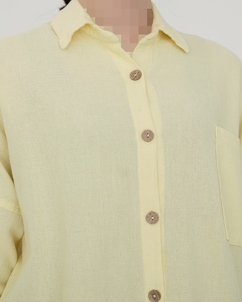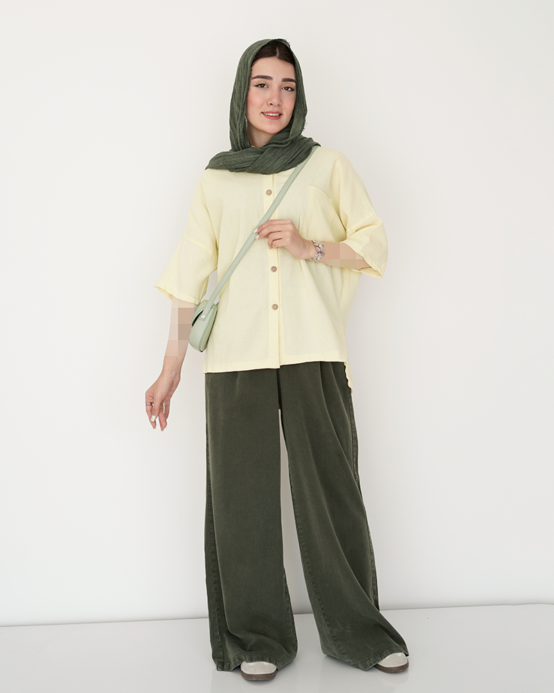 - توضیحات محصول: جنس شومیز، لینن کنفی است. شومیز یقه مردانه و دکمه های شومیز، کاربردی هستند. شومیز، دارای یک جیب کاربردی می باشد. میزان آبرفت از طریق جدول راهنمای سایز قابل مشاهده است.