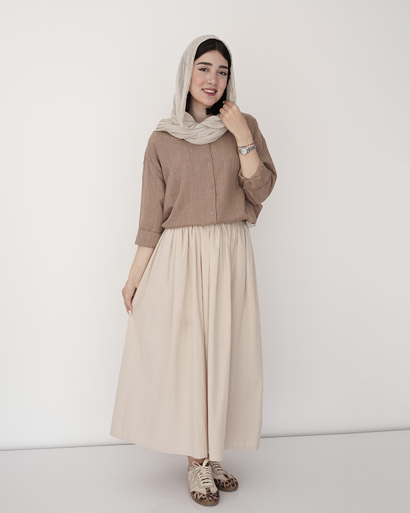 - توضیحات محصول: جنس شومیز شانتون می باشد. شومیز آستین بلند ، یقه مردانه و جلو دکمه می باشد. شومیز گتر دار (در انتهای شومیز) بوده و بسیار خنک و راحت مناسب استفاده روزمره است.