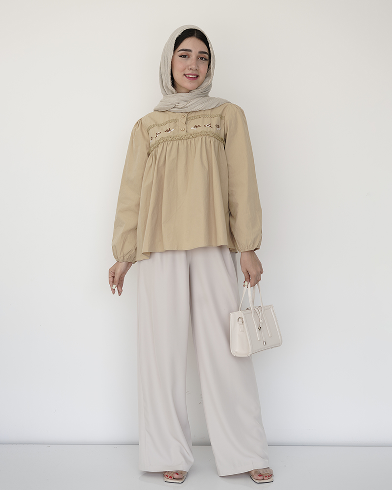 - توضیحات محصول: جنس شومیز پوبلین نخ می باشد. شومیز آستین بلند و یقه گرد می باشد. شومیز جلو بسته و دکمه های زیر یقه کاربردی می باشد.سر آستین این محصول کشدوزی شده و طرح های روی این محصول گلدوزی شده است. این محصول بسیار خنک و راحت مناسب استفاده روزانه است. میزان آبرفت از طریق جدول راهنمای سایز قابل مشاهده است.