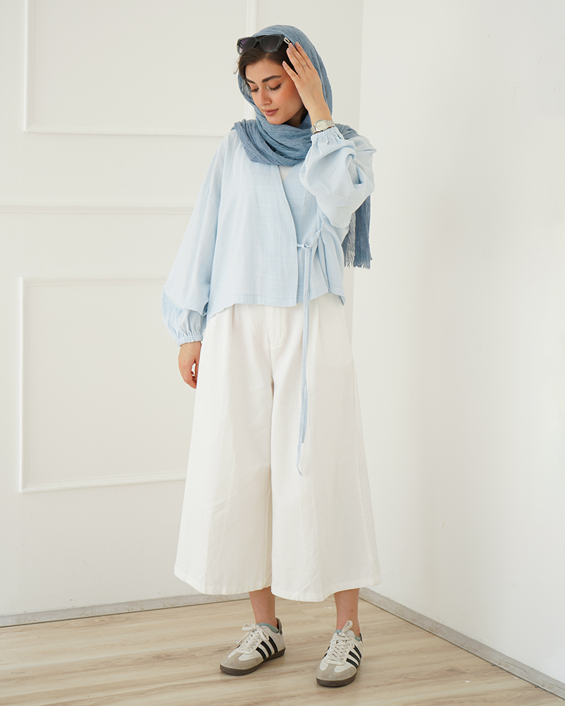 - توضیحات محصول: جنس شومیز لینن نخی می باشد. شومیز یقه هفت و جلو بندی می باشد. بند جلو شومیز کاربردی بوده و قابل تنظیم سایز می باشد.میزان آبرفت از طریق جدول راهنمای سایز قابل مشاهده است.