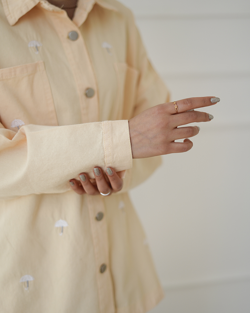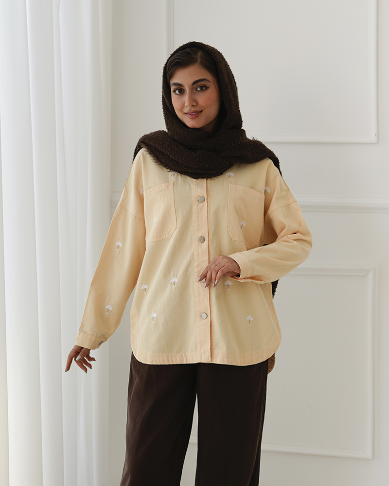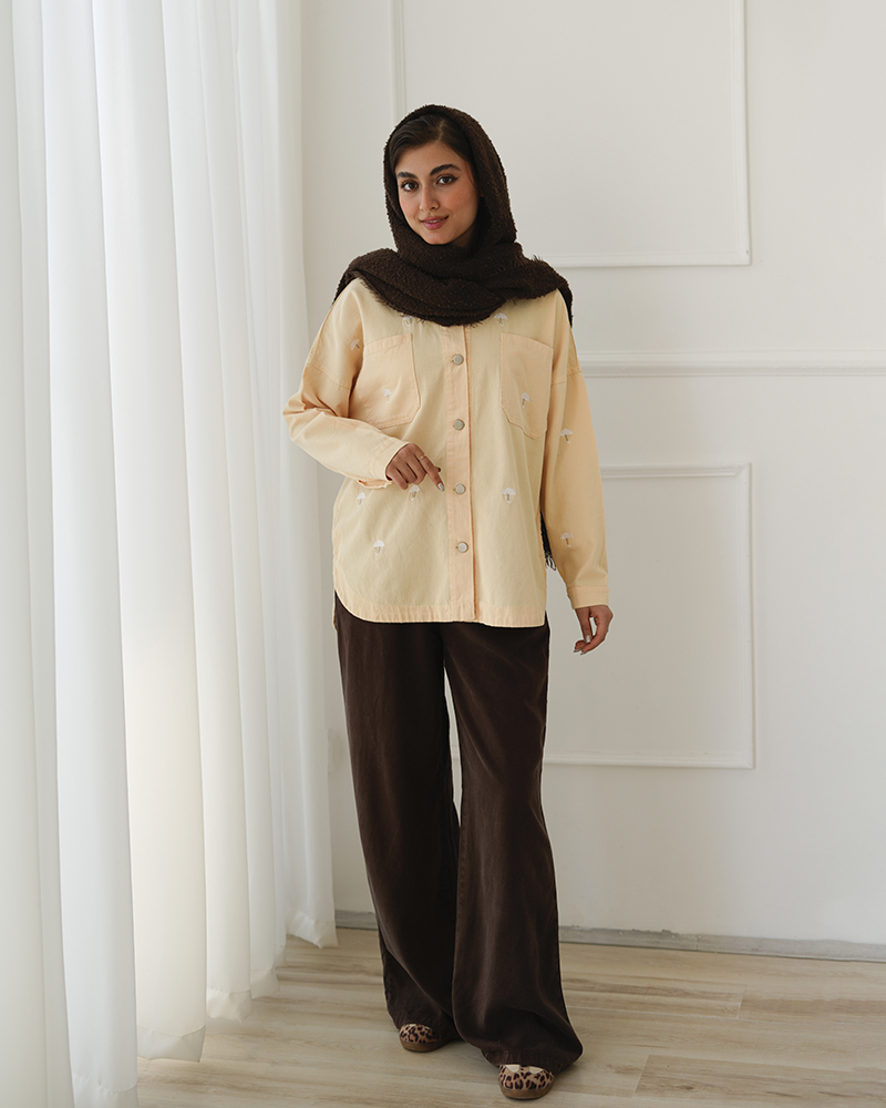 - توضیحات محصول: جنس شومیز کتان می باشد. شومیز یقه مردانه و دارای دو جیب کاربردی می باشد. دکمه های فلزی این محصول در قسمت سر آستین و جلوی لباس کاربردی می باشد. طرح های روی شومیز گلدوزی شده است.