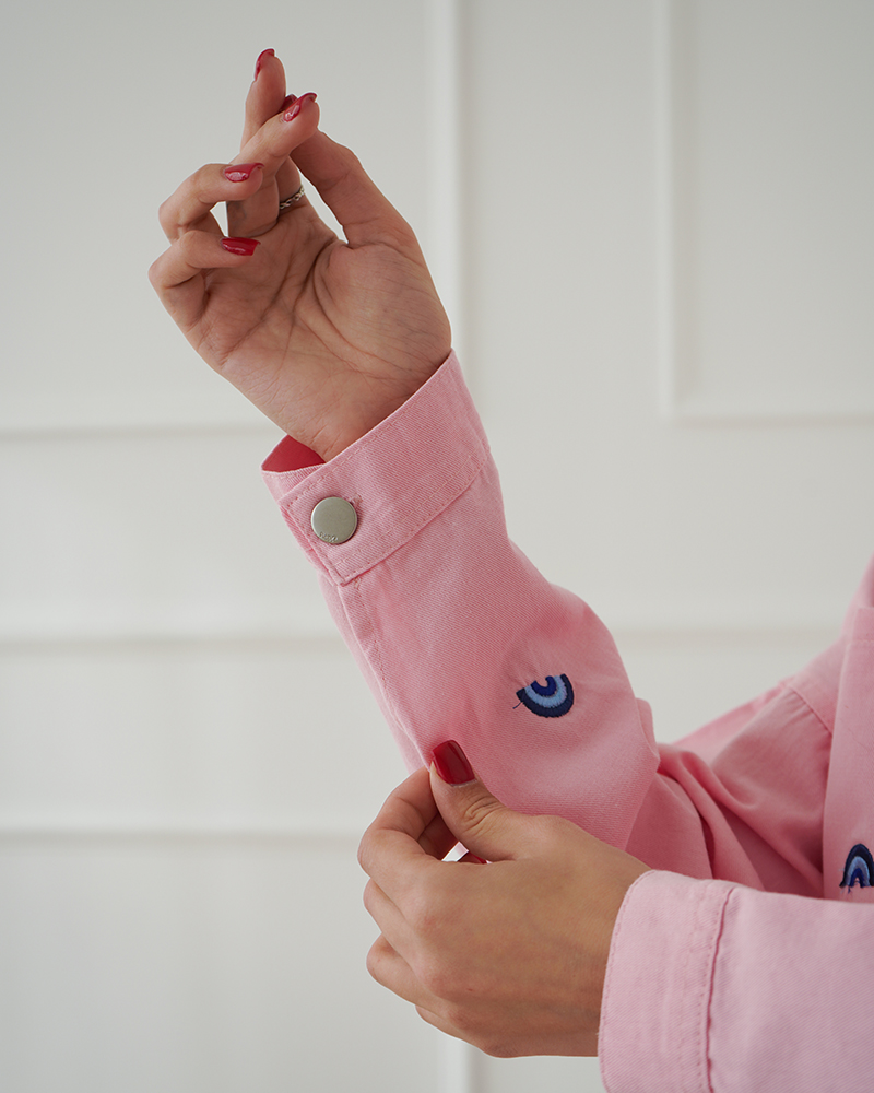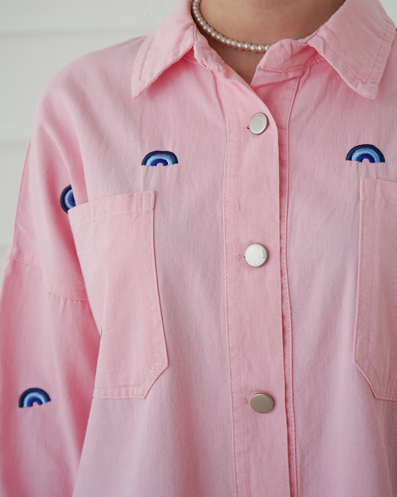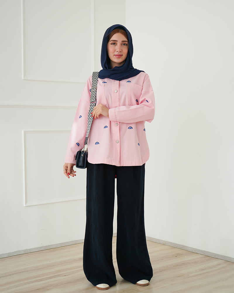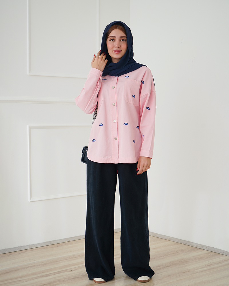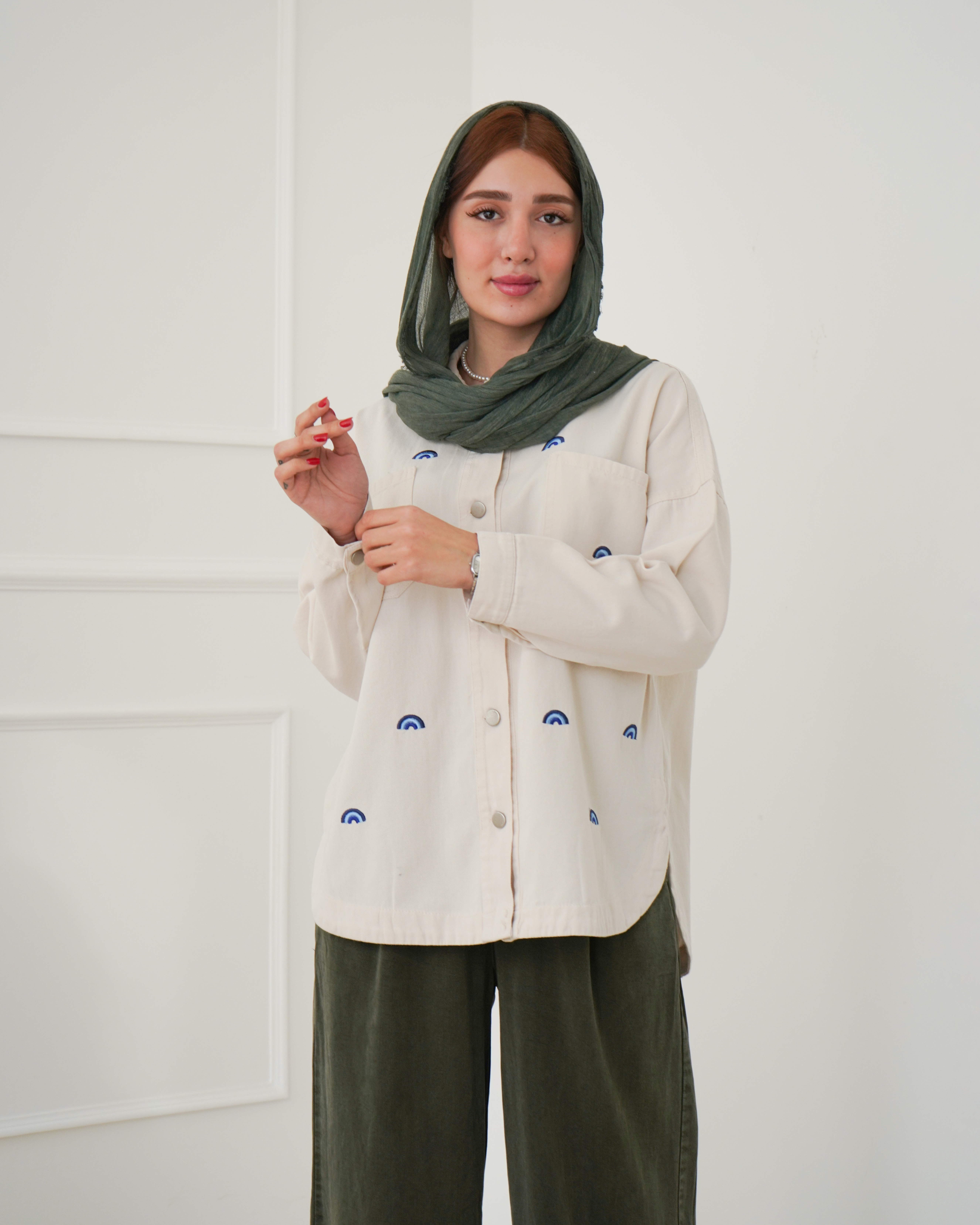 - توضیحات محصول: جنس شومیز کتان می باشد. شومیز یقه مردانه و دارای دو جیب کاربردی می باشد. دکمه های فلزی این محصول در قسمت سر آستین و جلوی لباس کاربردی می باشد. طرح های روی شومیز گلدوزی شده است.