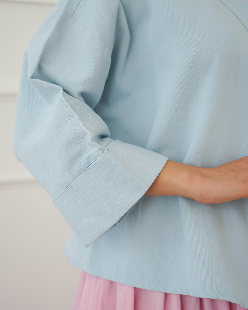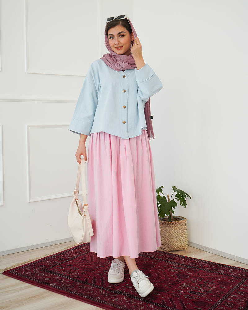 - توضیحات محصول: جنس شومیز کتان نخ می باشد. شومیز یقه مردانه و آستین پاکتی است. دکمه های قسمت جلو شومیز کاربردی هستند.