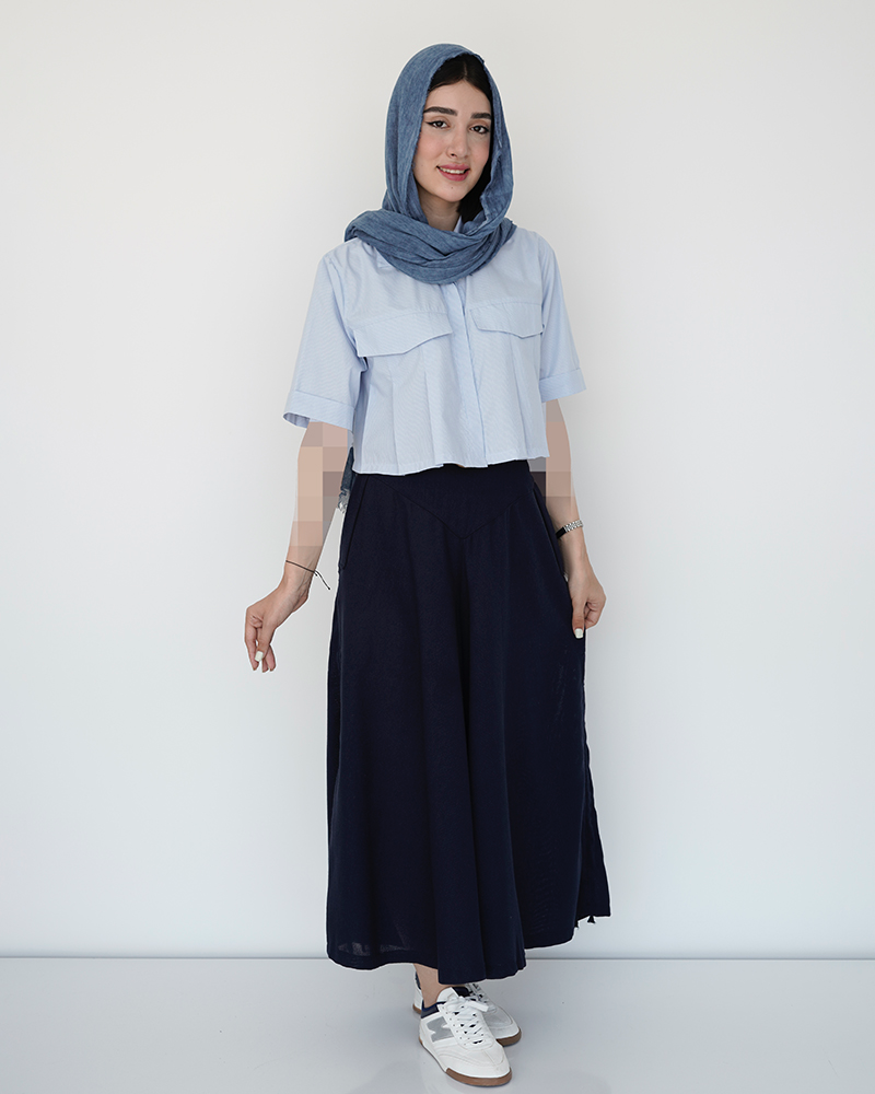 - توضیحات محصول: جنس شومیز پوبلین نخ می باشد. شومیز کراپ جلو پیلی دار و یقه مردانه است. آستین های این محصول از نوع پاکتی است. این شومیز کراپ بسیار خنک و با کیفیت مناسب استفاده روزمره است. جیب های شومیز نما می باشد. میزان آبرفت از طریق جدول راهنمای سایز قابل مشاهده است.