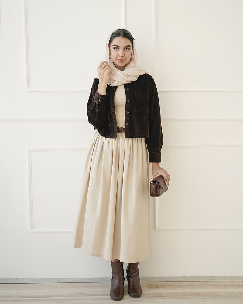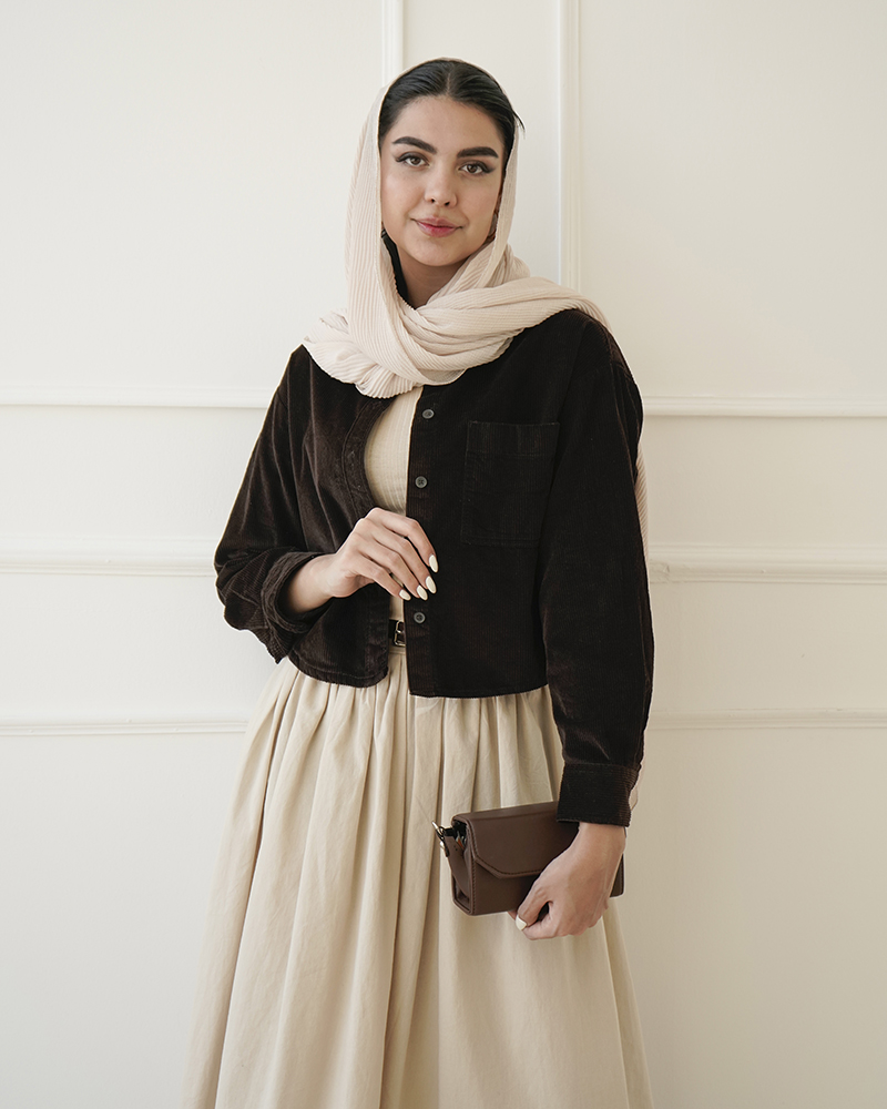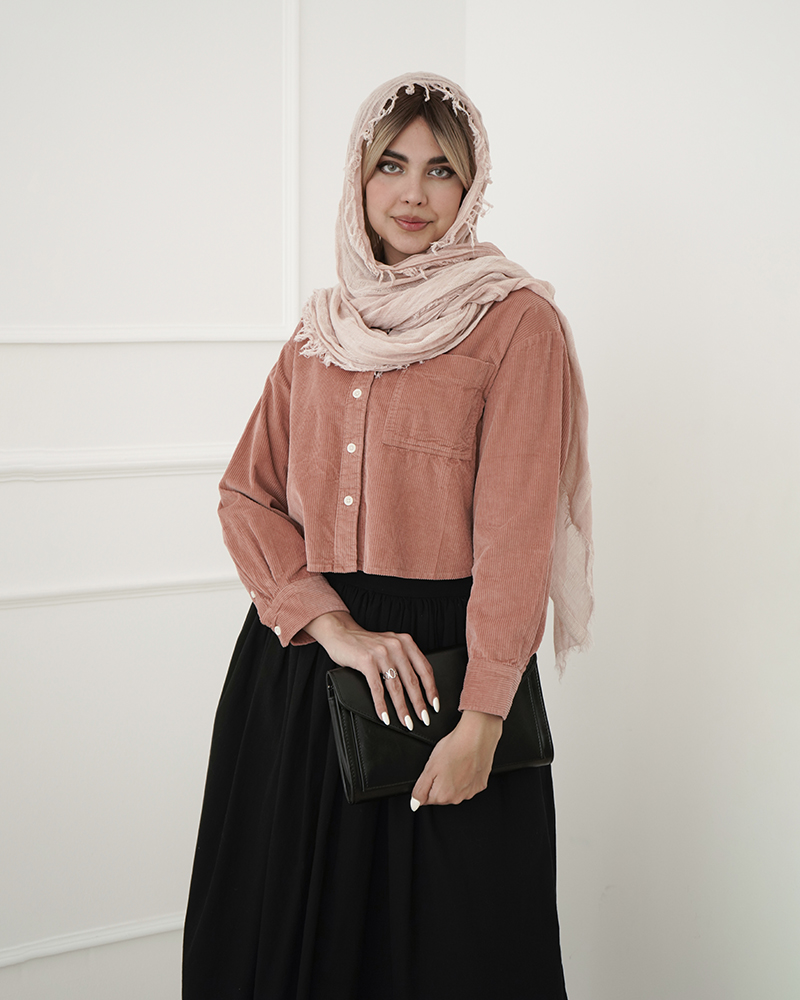 - توضیحات محصول: جنس شومیز مخمل کبریتی می باشد. شومیز یقه مردانه ،آستین بلند و جلو دکمه می باشد. جیب شومیز، کاربردی است.
