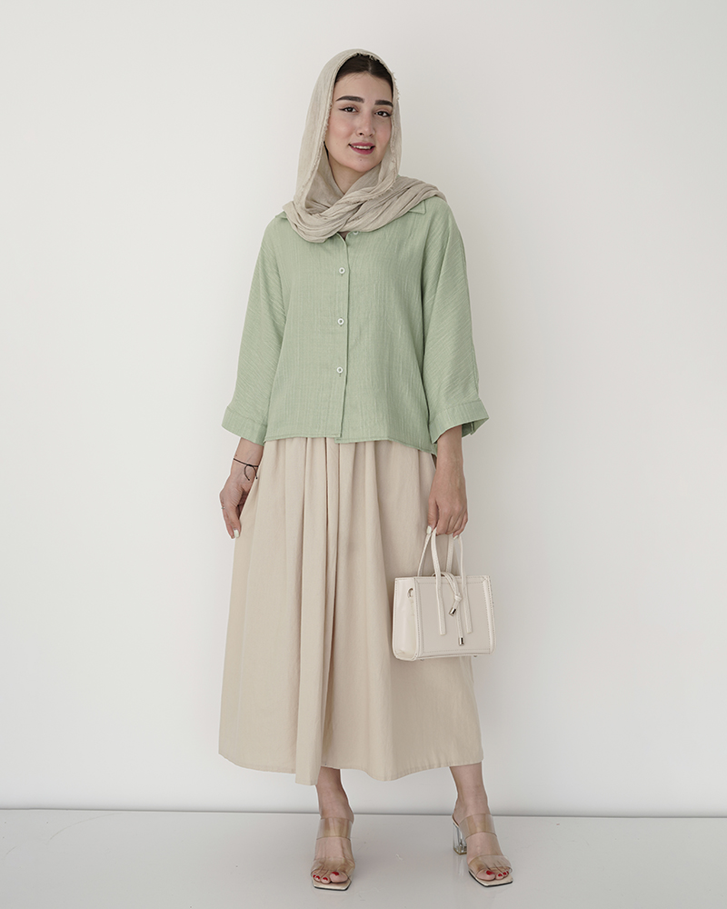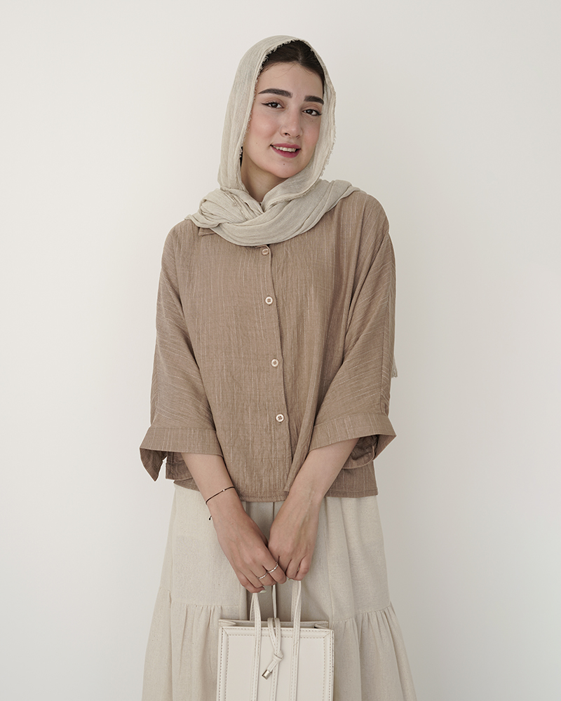 - توضیحات محصول: جنس شومیز، شانتون است. شومیز، یقه مردانه و دکمه ها کاربردی می باشد. میزان آبرفت از طریق جدول راهنمای سایز قابل مشاهده است.