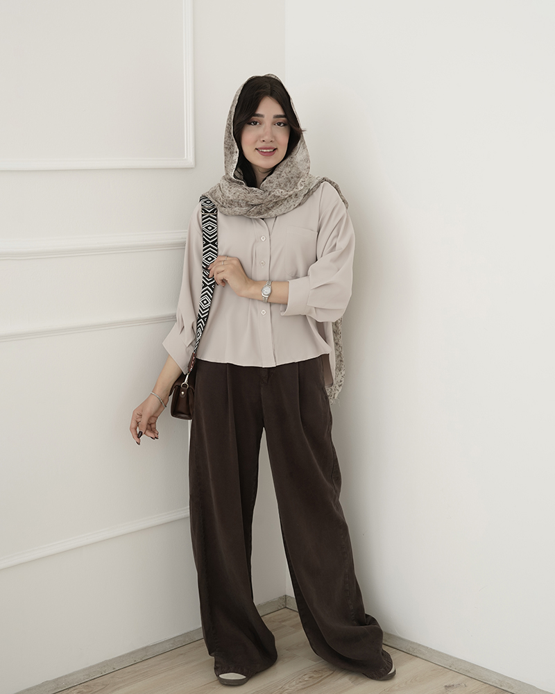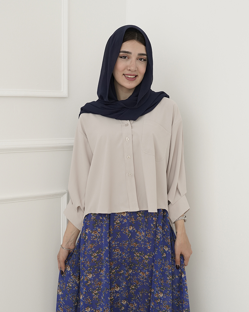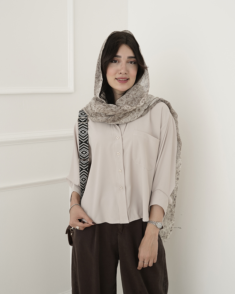 - توضیحات محصول: جنس شومیز کراپ، الیزه است. شومیز یقه مردانه می باشد. جیب و دکمه ها، کاربردی هستند.