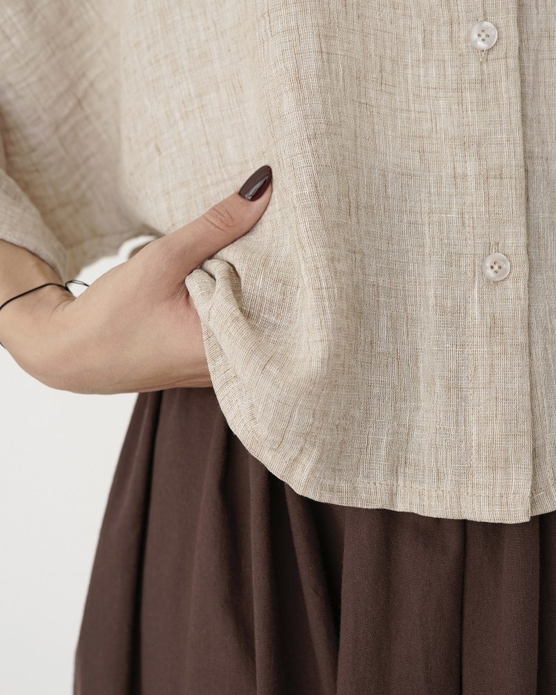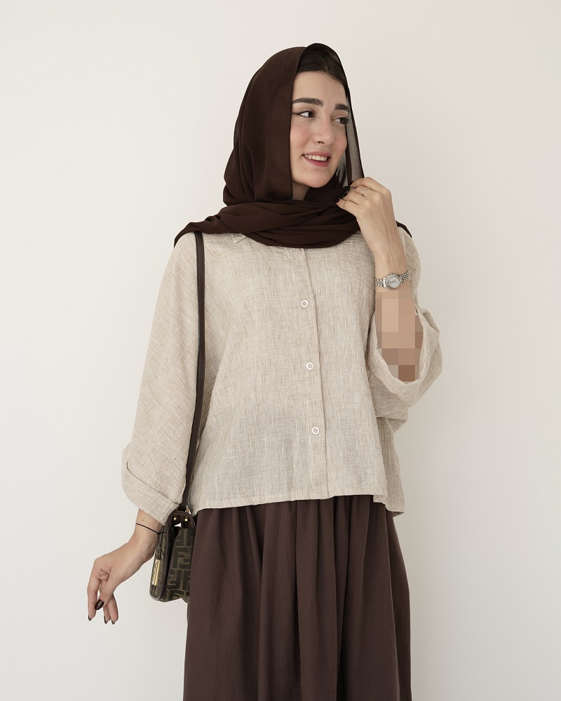 - توضیحات محصول: جنس شومیز لینن نخی می باشد. شومیز یقه مردانه و آستین بلند از نوع پاکتی می باشد. دکمه های جلو شومیز کاربردی و شومیز بسیار خنک و راحت مناسب استفاده روزمره می باشد. میزان آبرفت از طریق جدول راهنمای سایز قابل مشاهده است.