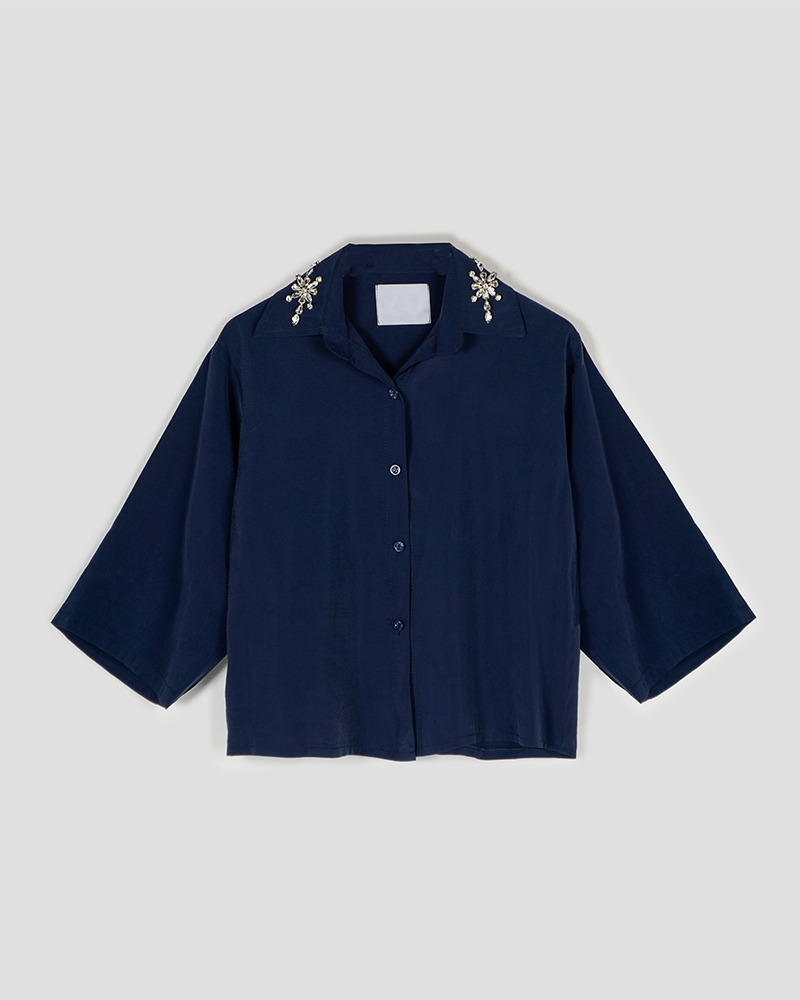 شومیز کوتاه یقه سنگ دوزی | هیبا