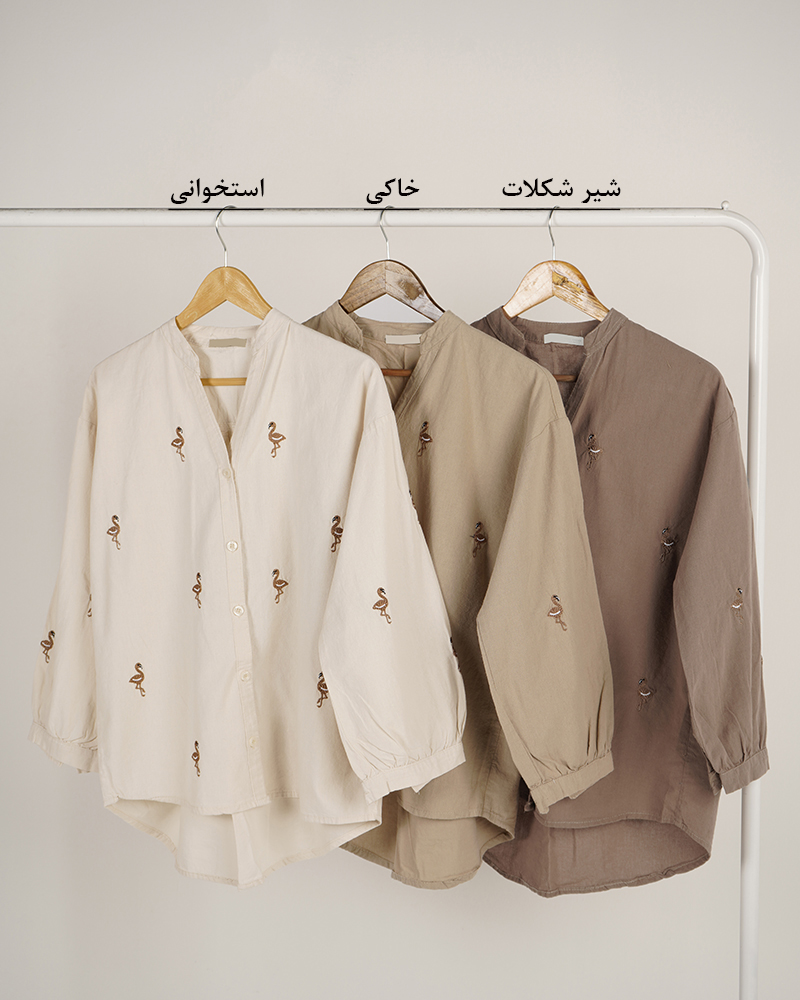 - توضیحات محصول: جنس شومیز، لینن است. طرح های روی شومیز، گلدوزی هستند. دکمه ها کاربردی می باشد. میزان آبرفت از طریق جدول راهنمای سایز قابل مشاهده است.