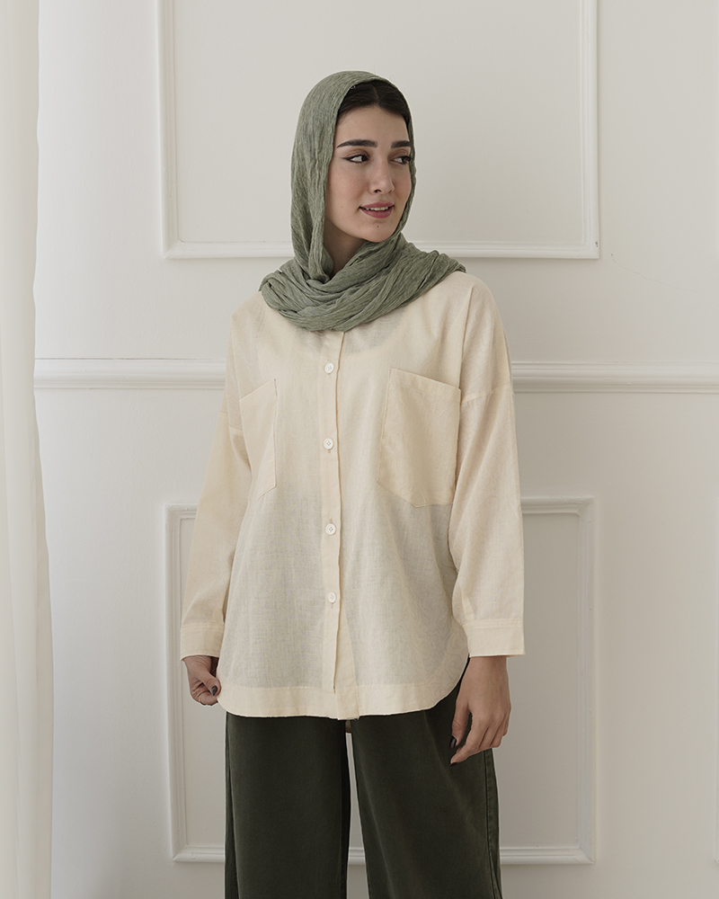 - توضیحات محصول: جنس شومیز، لینن نخ است. شومیز یقه مردانه می باشد. دکمه ها و جیب ها کاربردی هستند.