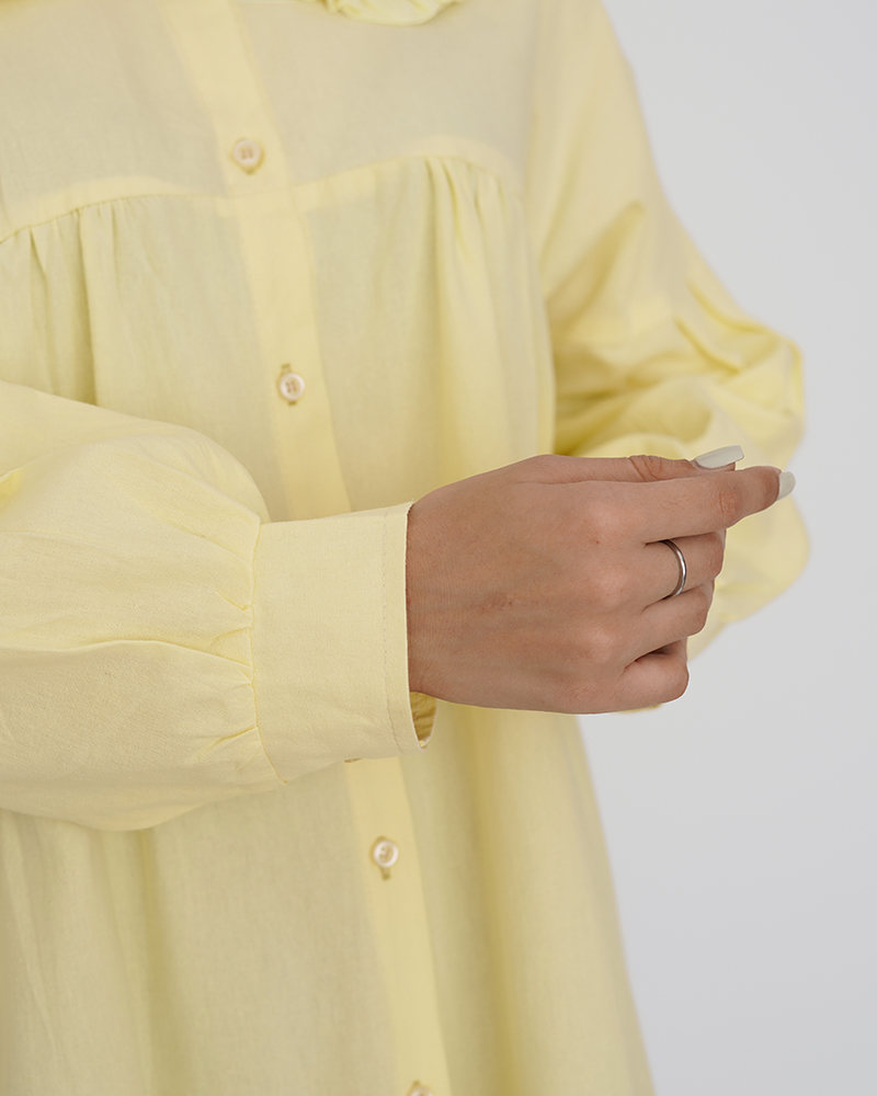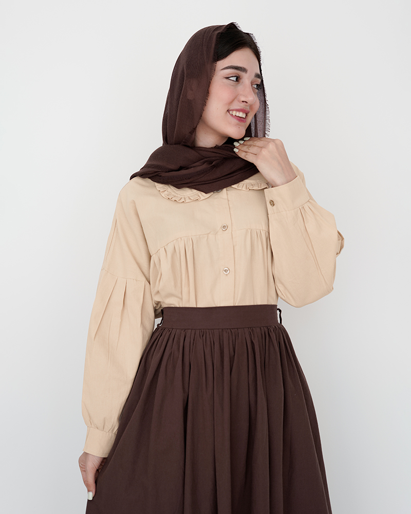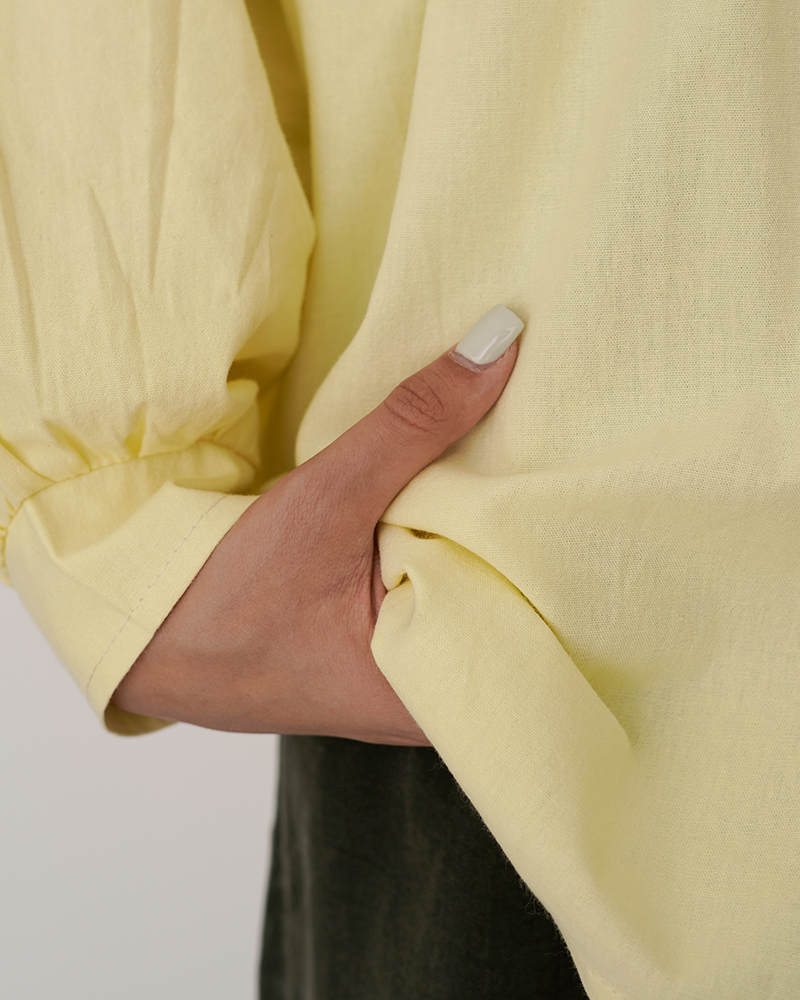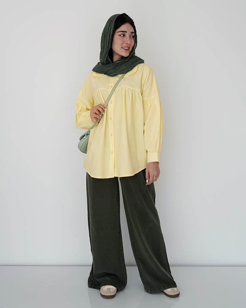 - توضیحات محصول: جنس شومیز لینن می باشد. شومیز آستین بلند و چین دار و دکمه های این محصول در قسمت سر آستین و جلو شومیز کاربردی هستند. شومیز یقه ب ب است. این محصول بسیار خنک و راحت مناسب استفاده روزانه می باشد. میزان آبرفت از طریق جدول راهنمای سایز قابل مشاهده است.