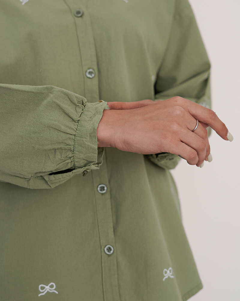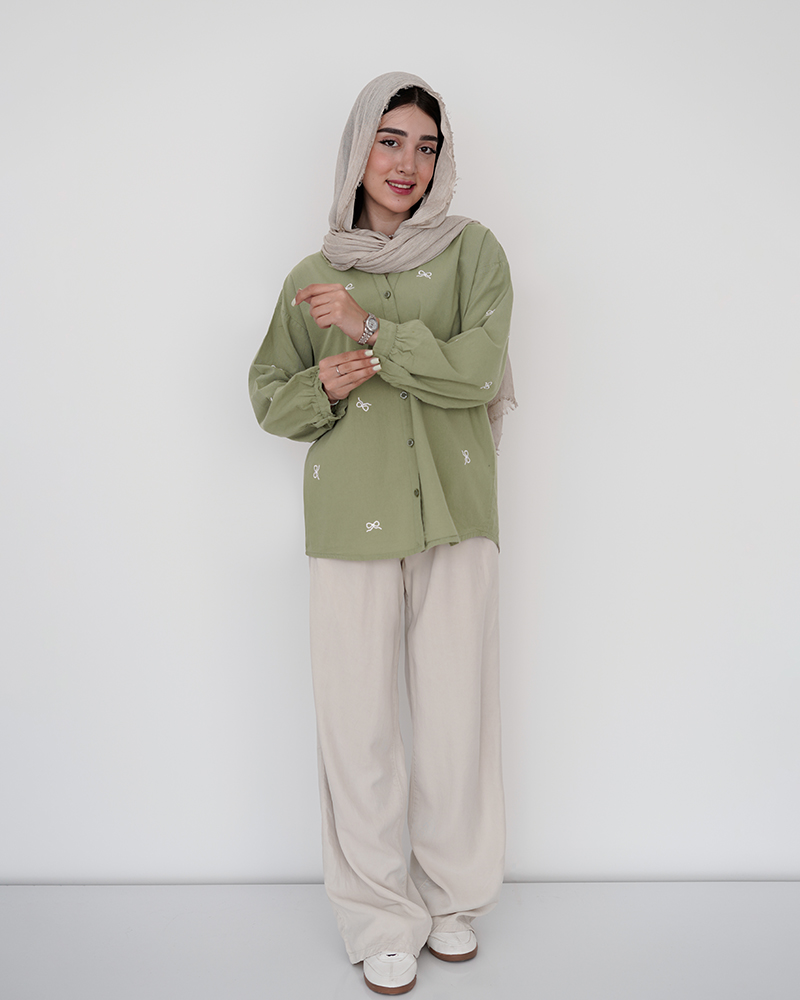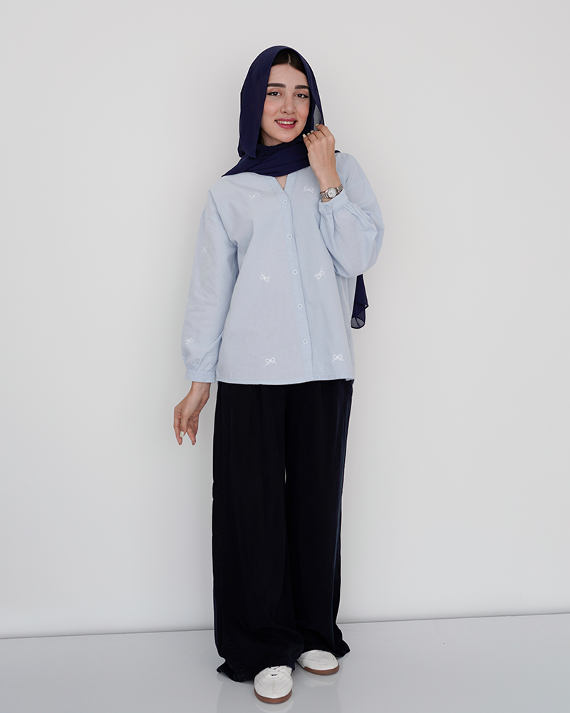 - توضیحات محصول: جنس شومیز لینن می باشد. شومیز یقه دیپلمات و آستین بلند می باشد. دکمه های قسمت جلو شومیز کاربردی بوده و طرح های روی شومیز گلدوزی شده می باشند. این محصول بسیار خنک و پشت پیلی مناسب استفاده روزمره می باشد. میزان آبرفت از طریق جدول راهنمای سایز قابل مشاهده است.