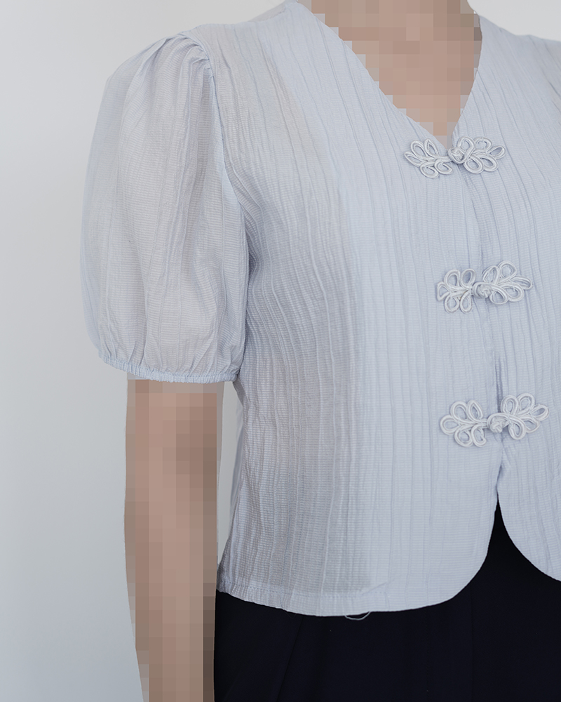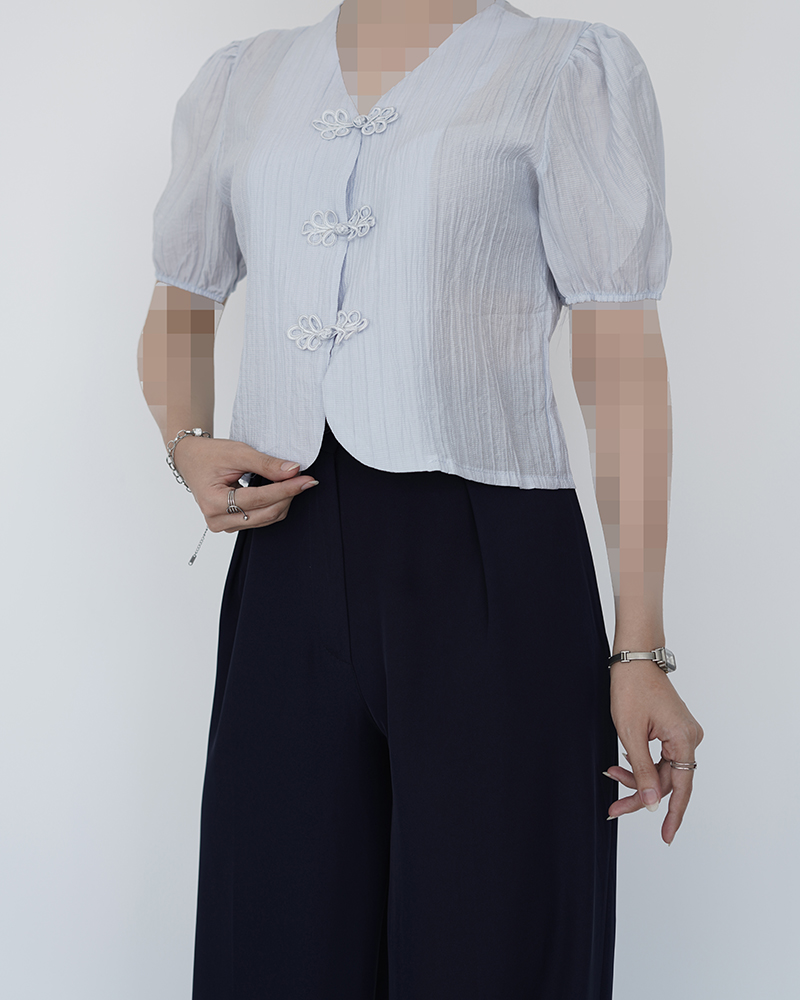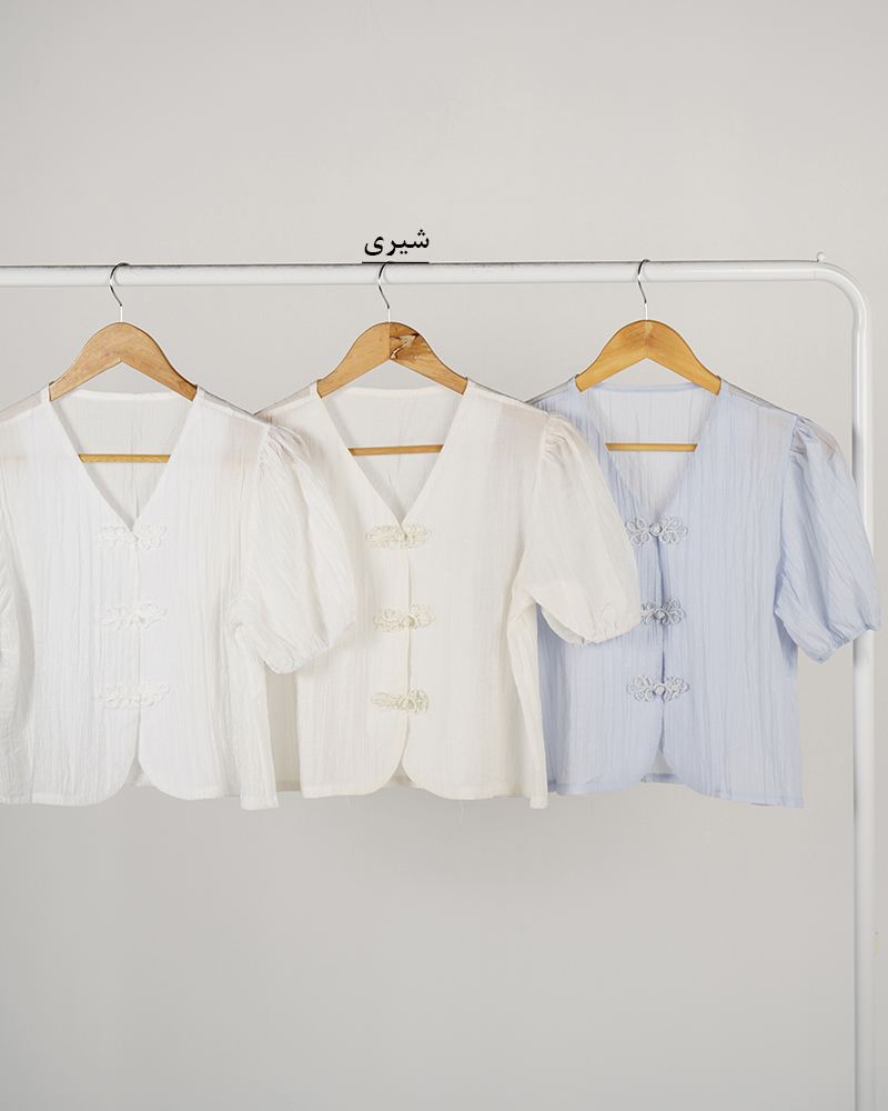 - توضیحات محصول: جنس شومیز حریر پلیسه می باشد. شومیز آستین کوتاه و یقه هفت می باشد. دکمه های این شومیز از مدل گره ای و کاربردی می باشد. میزان آبرفت از طریق جدول راهنمای سایز قابل مشاهده است.