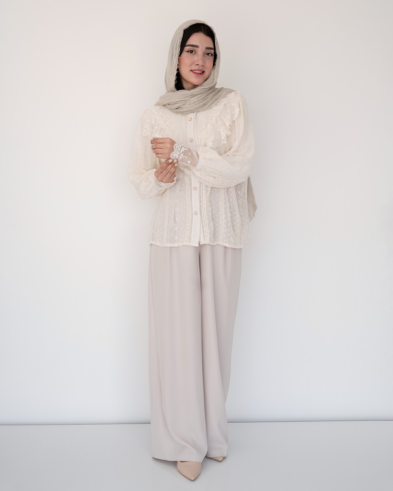 - توضیحات محصول: جنس شومیز توری می باشد. شومیز یقه مردانه و دارای دکمه های کاربردی می باشد. شومیز بدن نما بوده و بسیار خنک و مجلسی مناسب استفاده روزمره می باشد.
