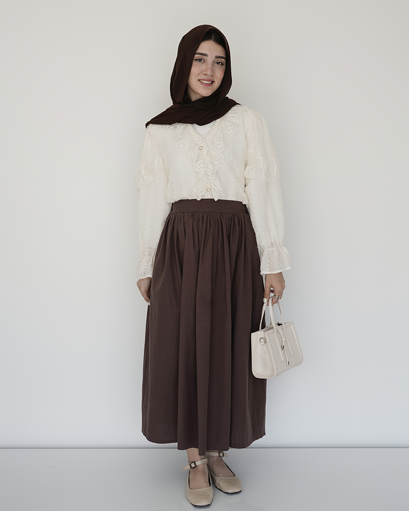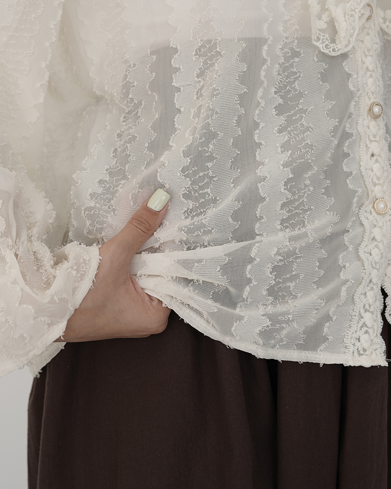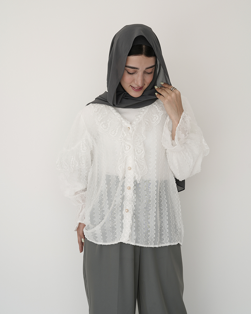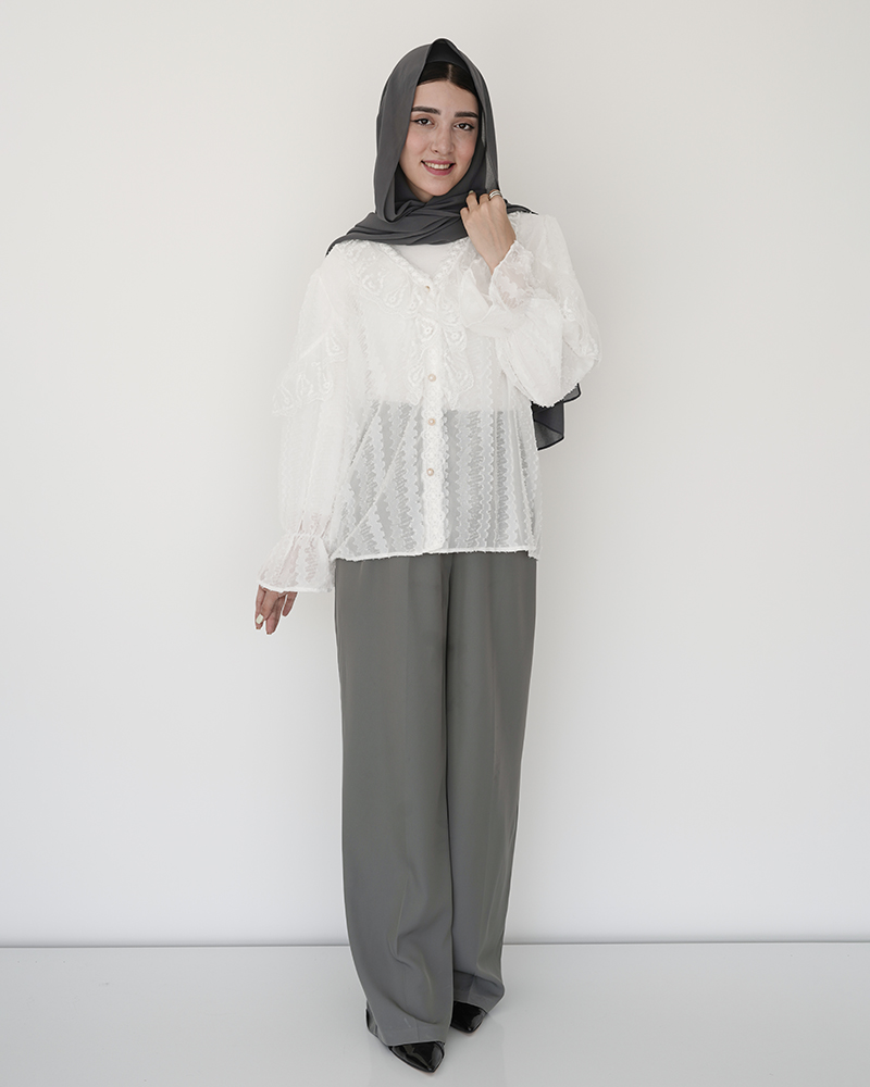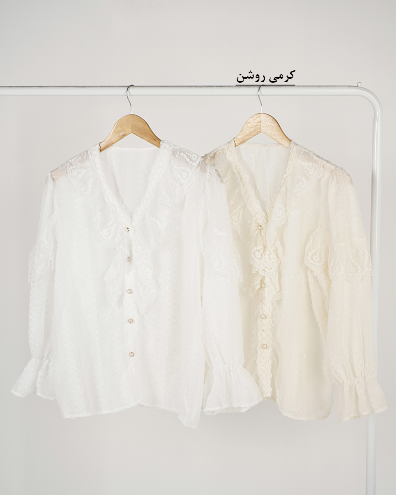 - توضیحات محصول: جنس شومیز توری می باشد. شومیز آستین بلند و جلو دکمه می باشد. شومیز بدن نما بوده و مجلسی و خنک مناسب استفاده روزمره است.