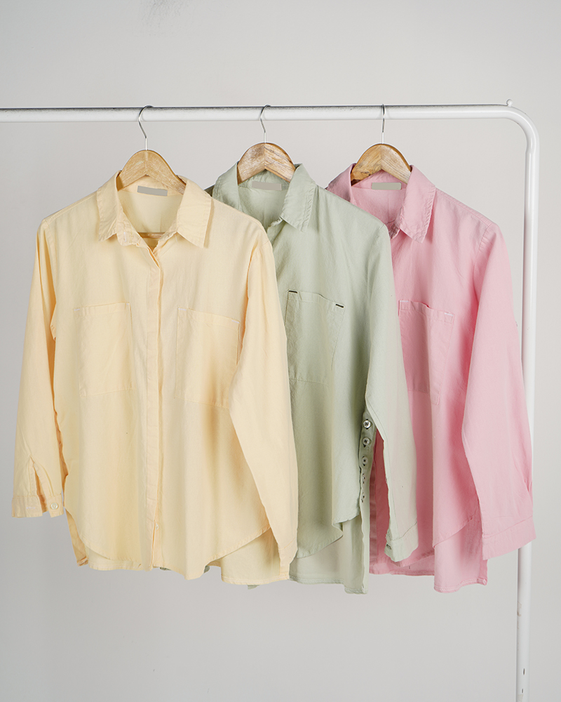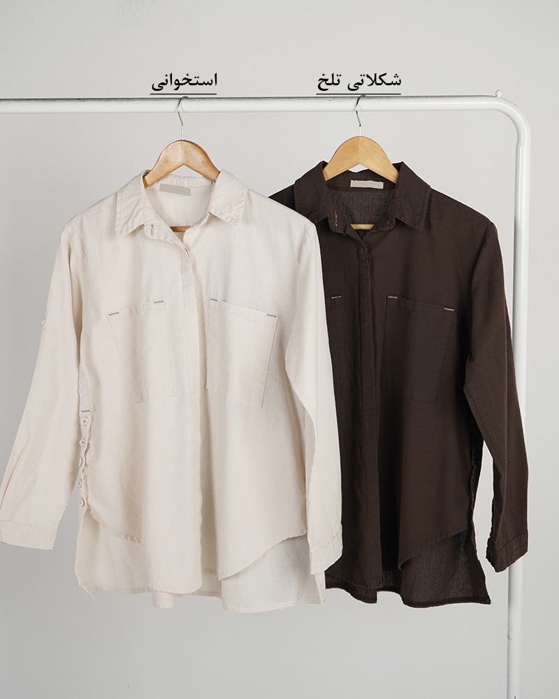 - توضیحات محصول: جنس شومیز، لینن است. شومیز، بغل دکمه می باشد. جیب ها و دکمه ها کاربردی هستند. میزان آبرفت از طریق جدول راهنمای سایز قابل مشاهده است.