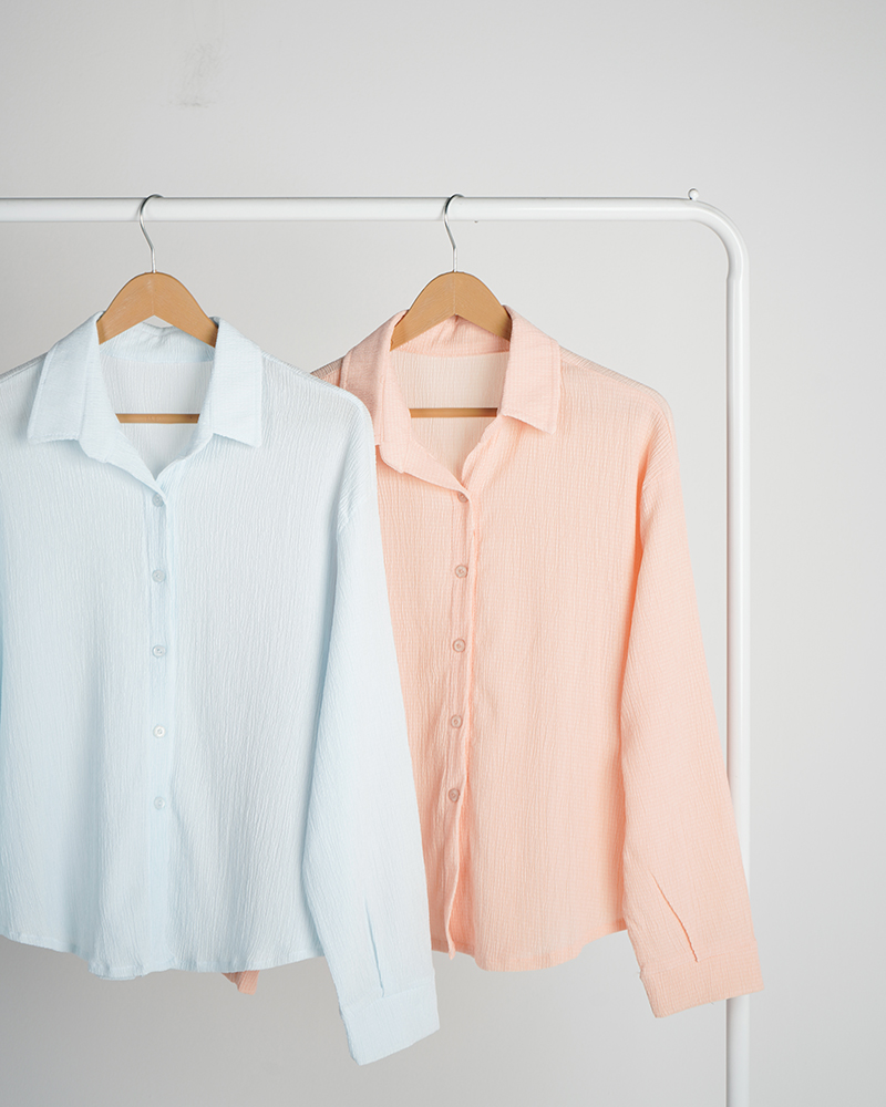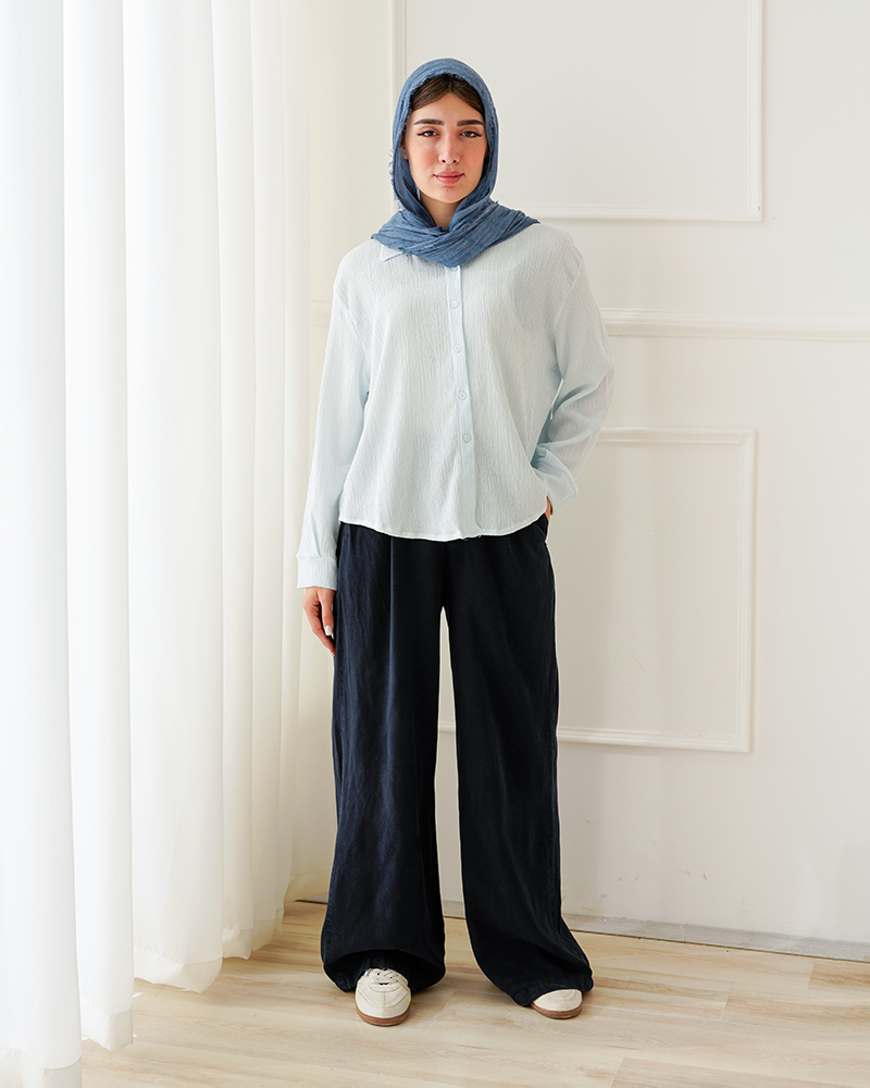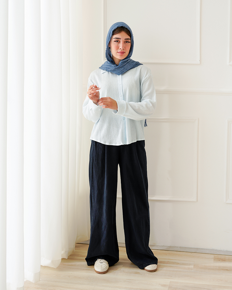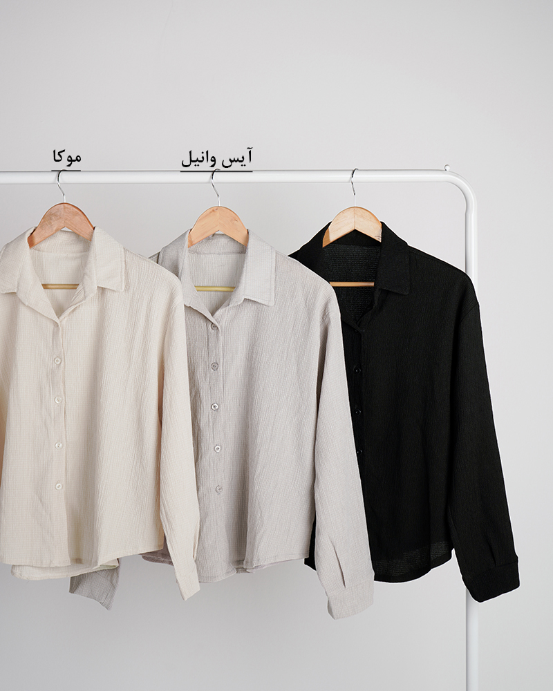 - توضیحات محصول: جنس شومیز کریشه پفکی می باشد. شومیز یقه مردانه است.