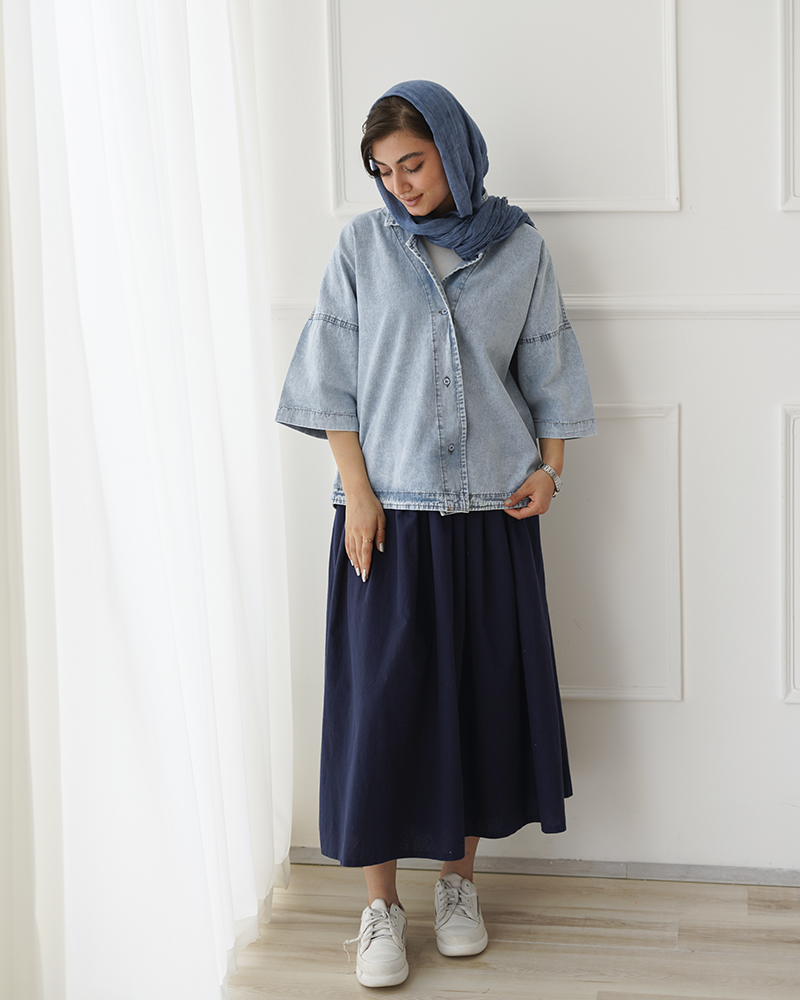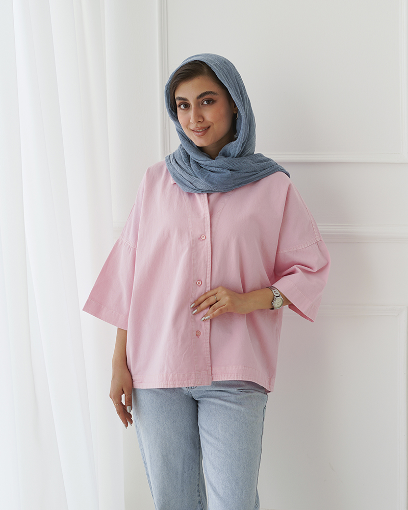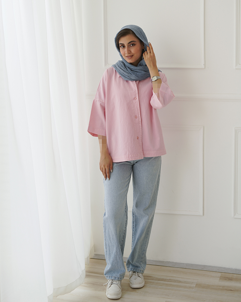 - توضیحات محصول: جنس شومیز، کتان پنبه است. شومیز یقه انگلیسی می باشد. دکمه های شومیز، کاربردی هستند.