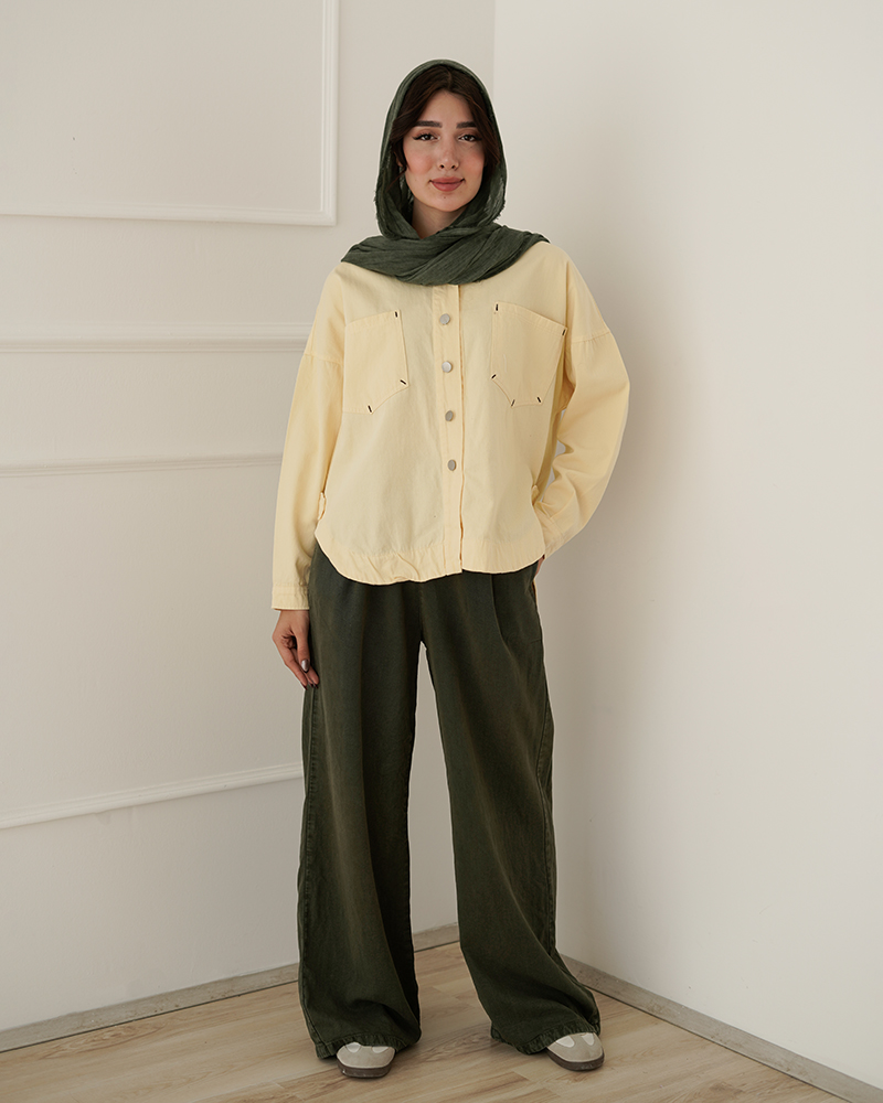 - توضیحات محصول: جنس شومیز کتان می باشد. شومیز یقه مردانه و دارای دو جیب کاربردی است. دکمه های این محصول در قسمت سر آستین و جلوی شومیز کاربردی می باشد. این محصول بسیار راحت و کاربردی مناسب استفاده در چهار فصل سال می باشد.