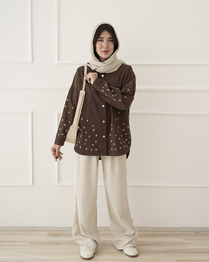 - توضیحات محصول: جنس شومیز کتان می باشد. دکمه های قسمت جلو و سر آستین کاربردی است. طرح های روی شومیز گلدوزی شده است.