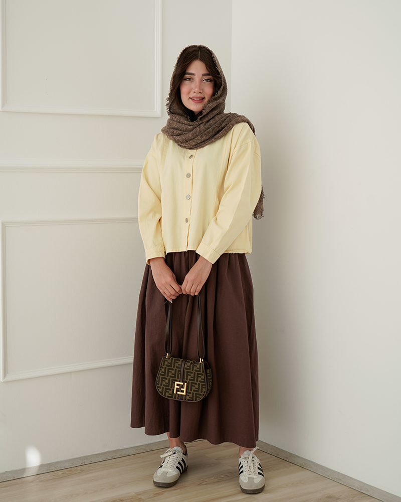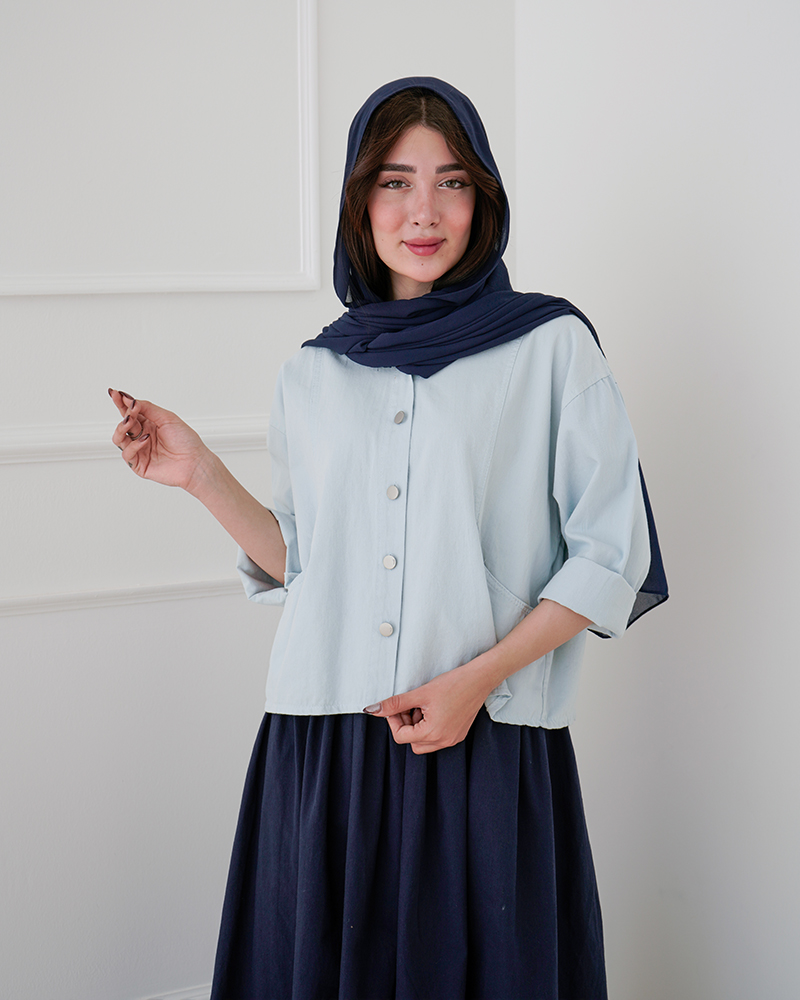 - توضیحات محصول: جنس شومیز کتان می باشد. شومیز یقه مردانه و استین بلند می باشد. شومیز دارای دو جیب کاربردی است.