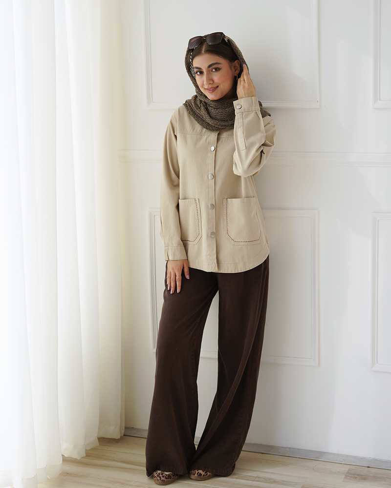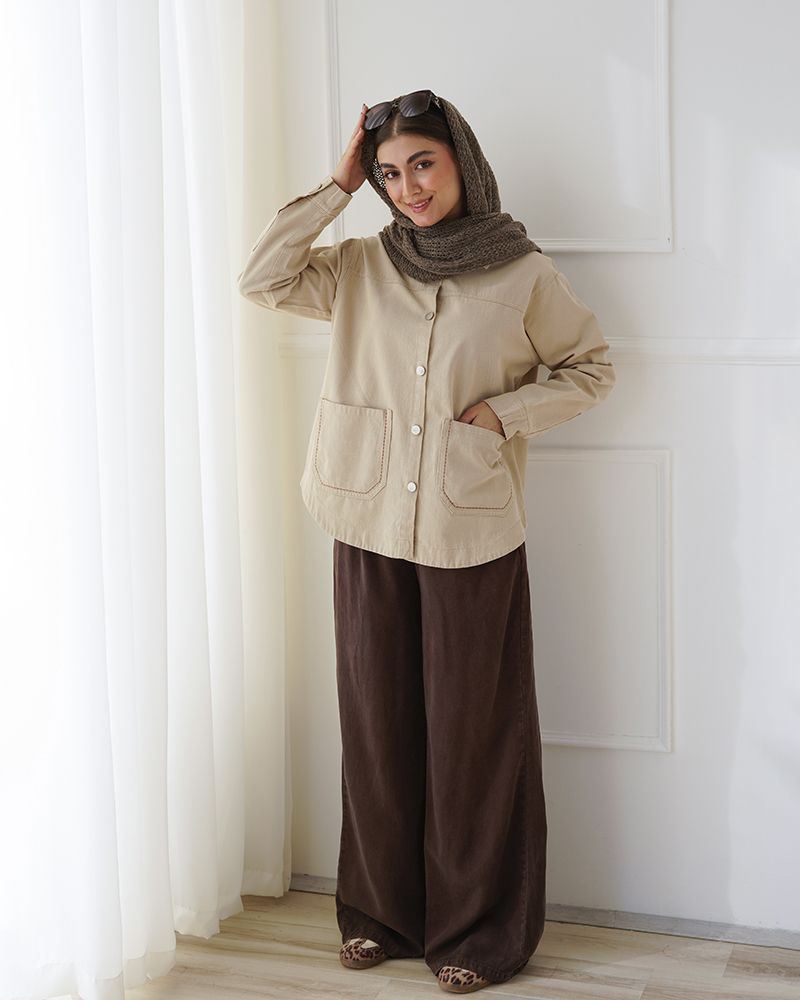 - توضیحات محصول: جنس شومیز کتان می باشد. شومیز یقه مردانه ،آستین بلند و دارای دو جیب کاربردی می باشد. دکمه های این محصول در قسمت سر آستین و جلو کاربردی می باشد. این محصول بسیار با کیفیت و راحت مناسب استفاده روزمره است.