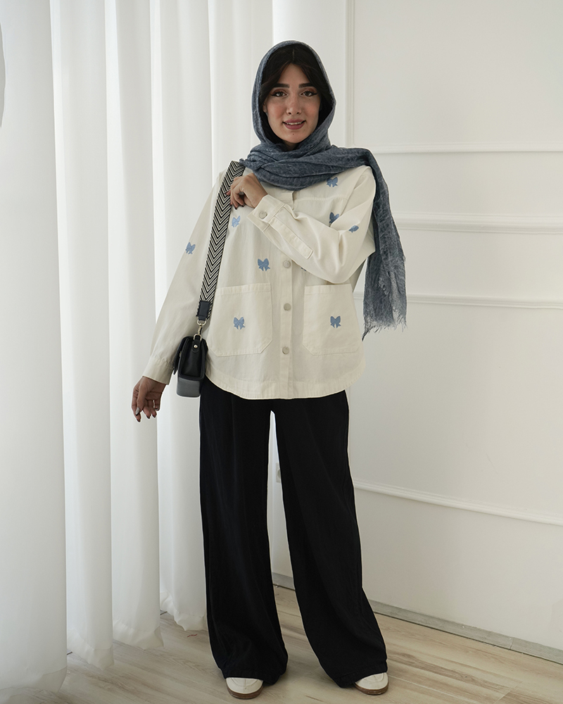 - توضیحات محصول: جنس شومیز کتان می باشد. دکمه های قسمت جلو و سر آستین کاربردی است. طرح های روی شومیز گلدوزی شده است. شومیز، دارای دو جیب کاربردی می باشد.
