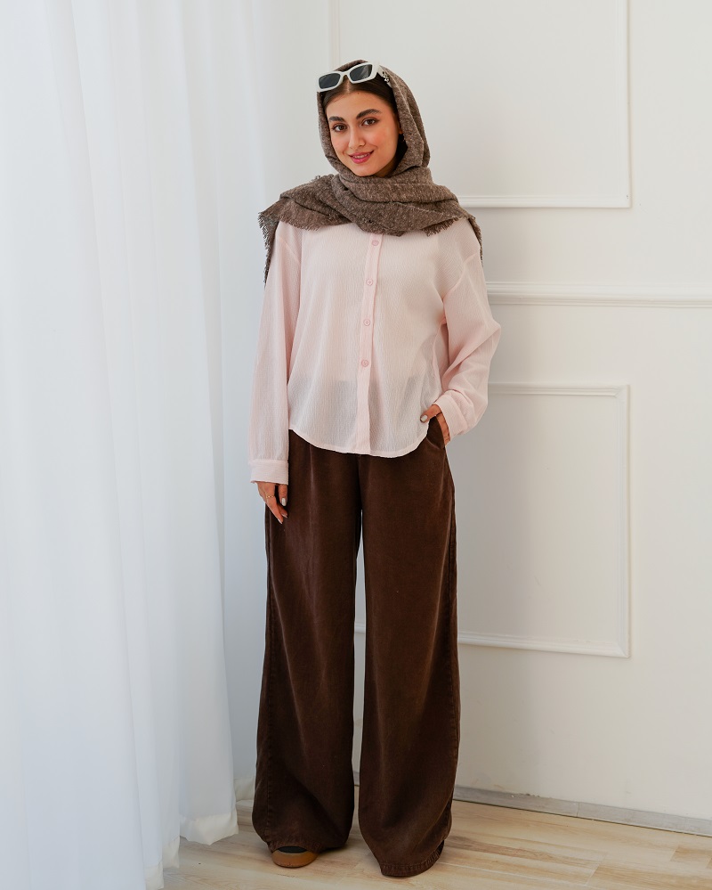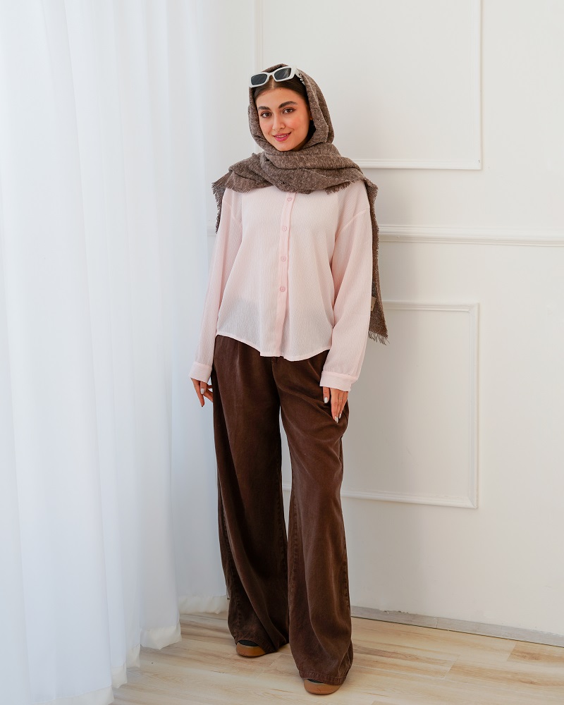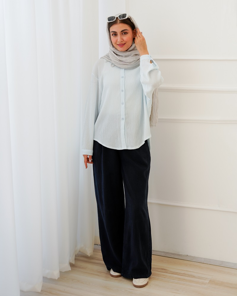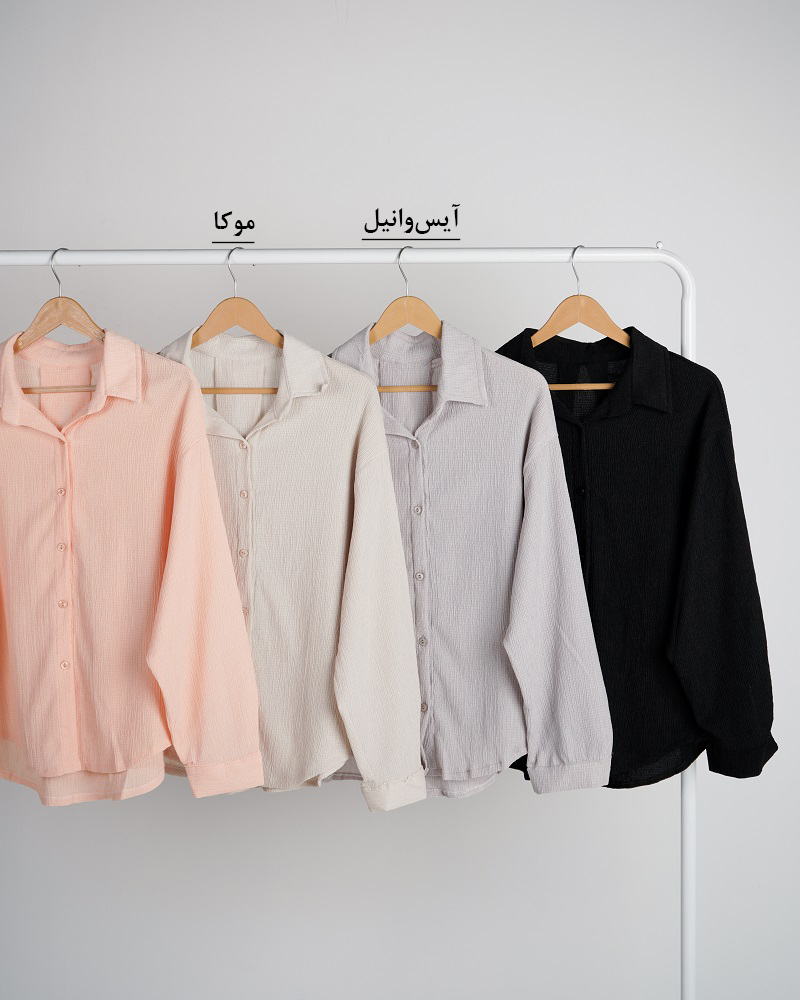 - توضیحات محصول: جنس شومیز کریشه پفکی می باشد. شومیز یقه مردانه است.
