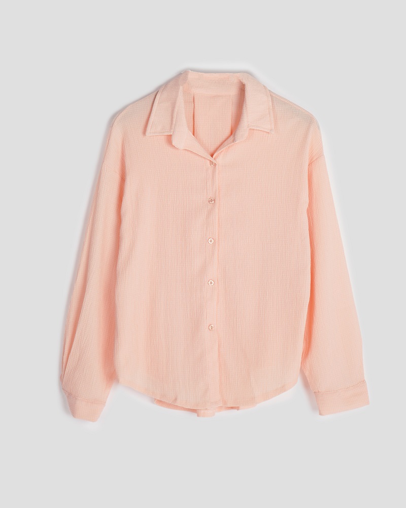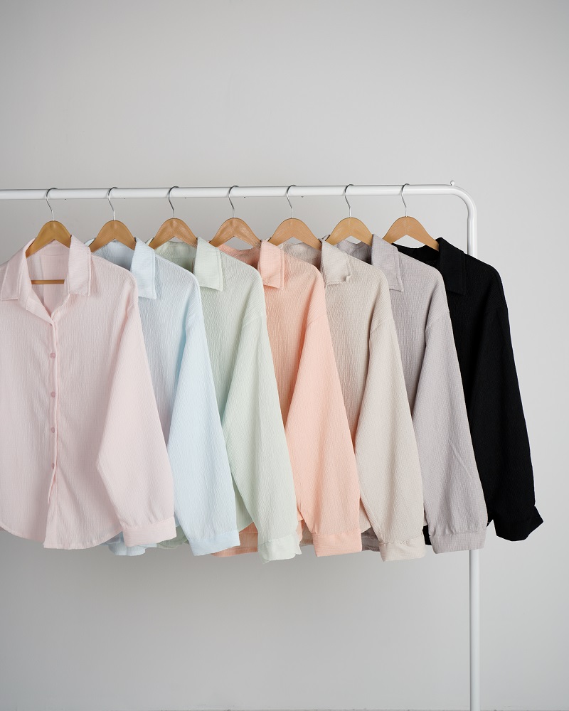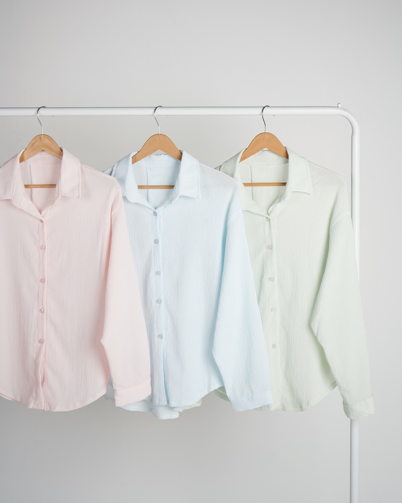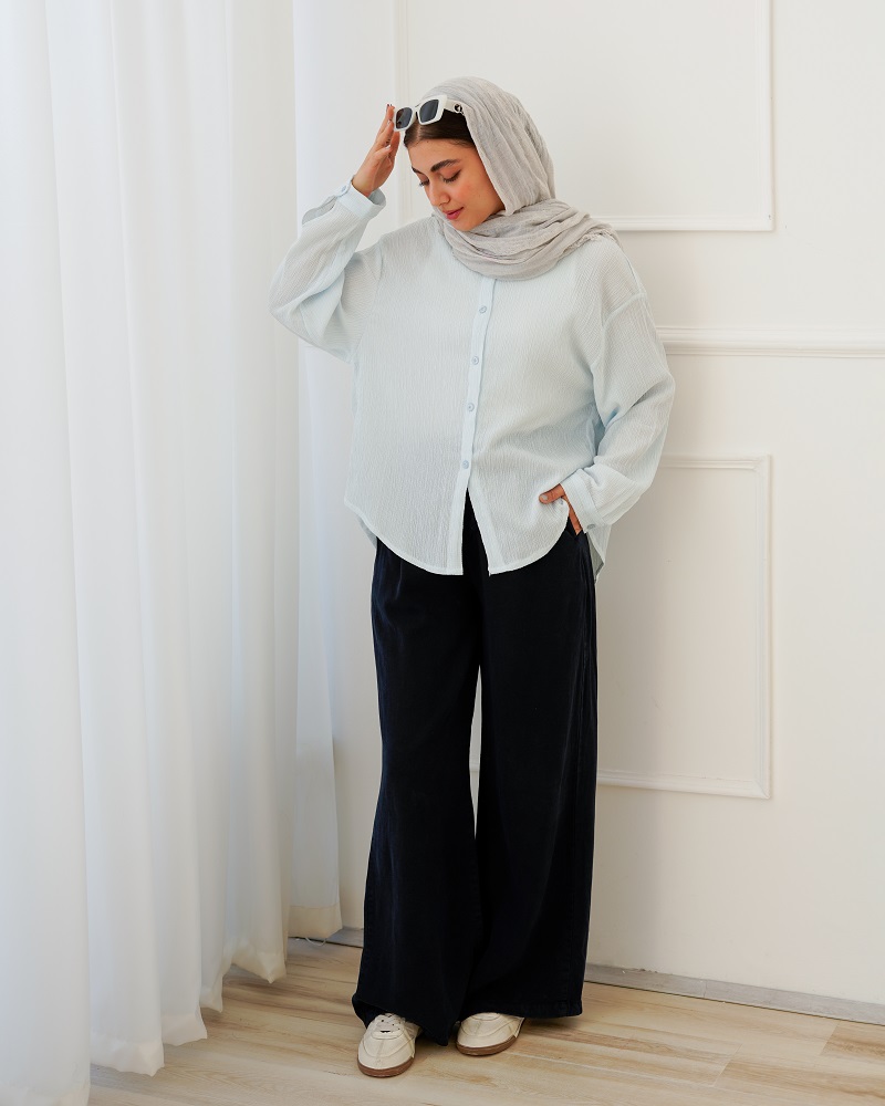 - توضیحات محصول: جنس شومیز کریشه پفکی می باشد. شومیز یقه مردانه است.