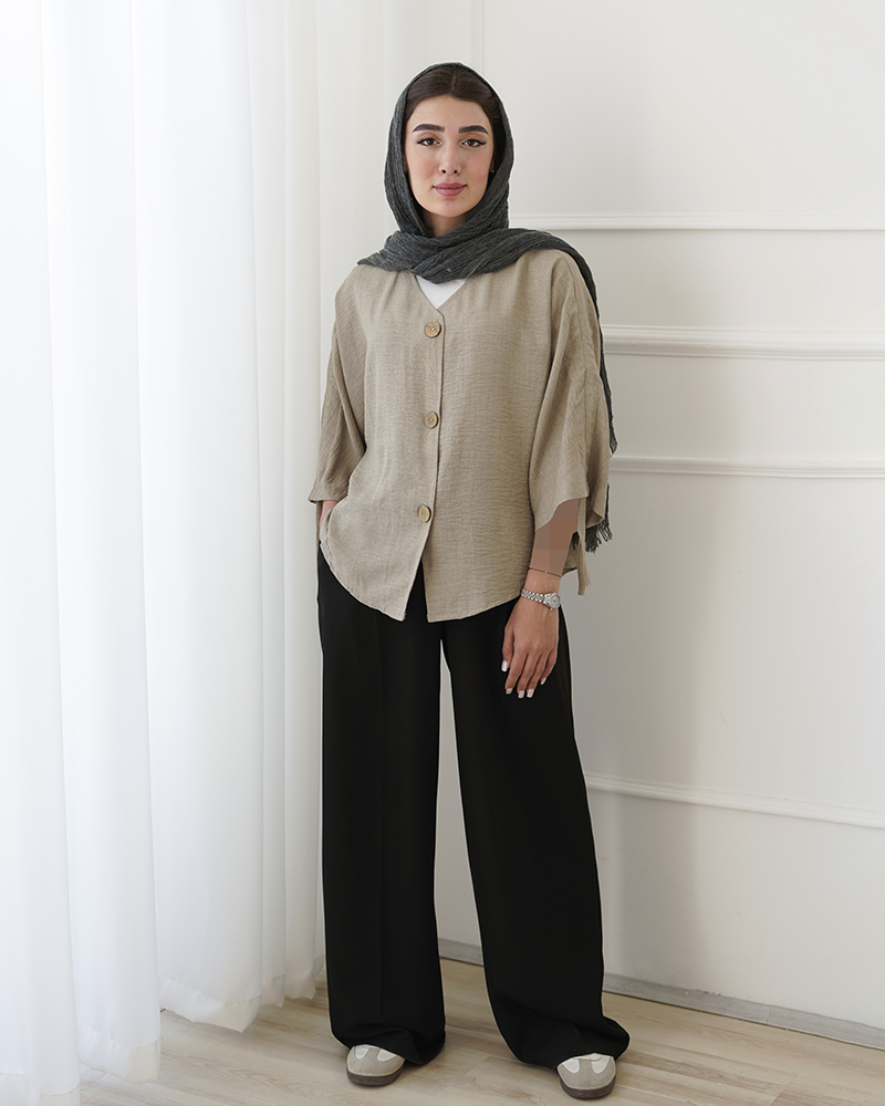 - توضیحات محصول: جنس شومیز شانتون می باشد. شومیز یقه گرد بوده و دکمه های قسمت جلوی شومیز کاربردی می باشد.