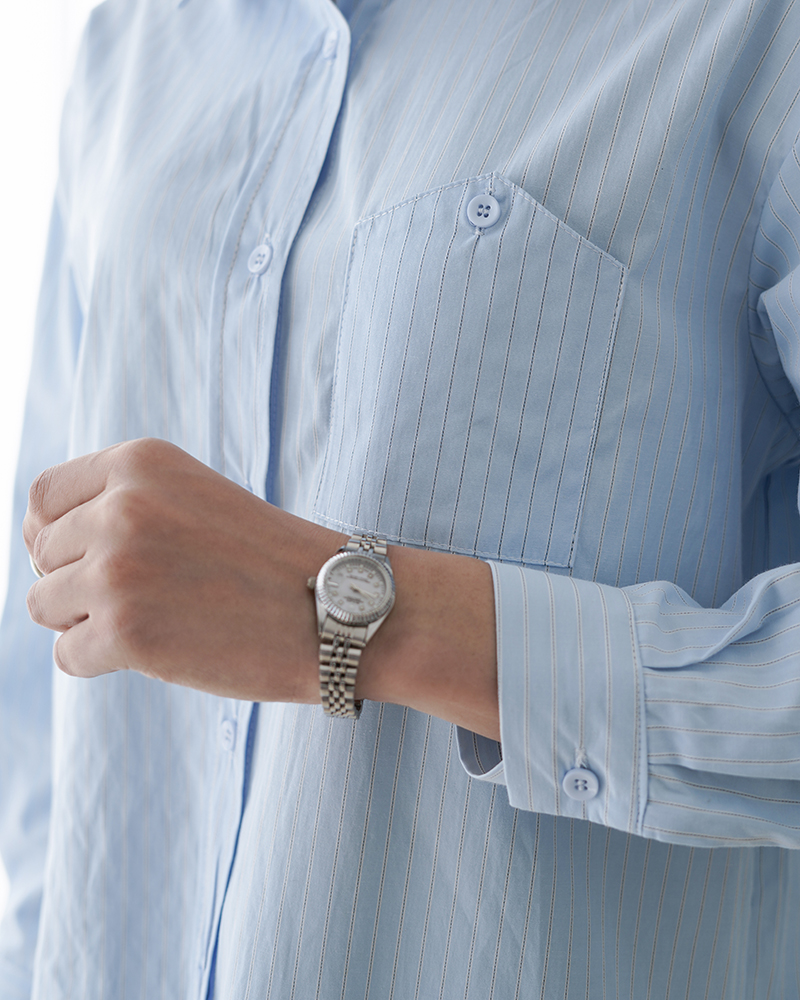 - توضیحات محصول: جنس شومیز تترون نخ می باشد. شومیز راه راه ،یقه مردانه و دارای دکمه های کاربردی در قسمت یقه و جلو می باشد. شومیز بسیار لطیف و خنک و خوش ایست مناسب استفاده روزانه می باشد. میزان آبرفت از طریق جدول راهنمای سایز قابل مشاهده می باشد.